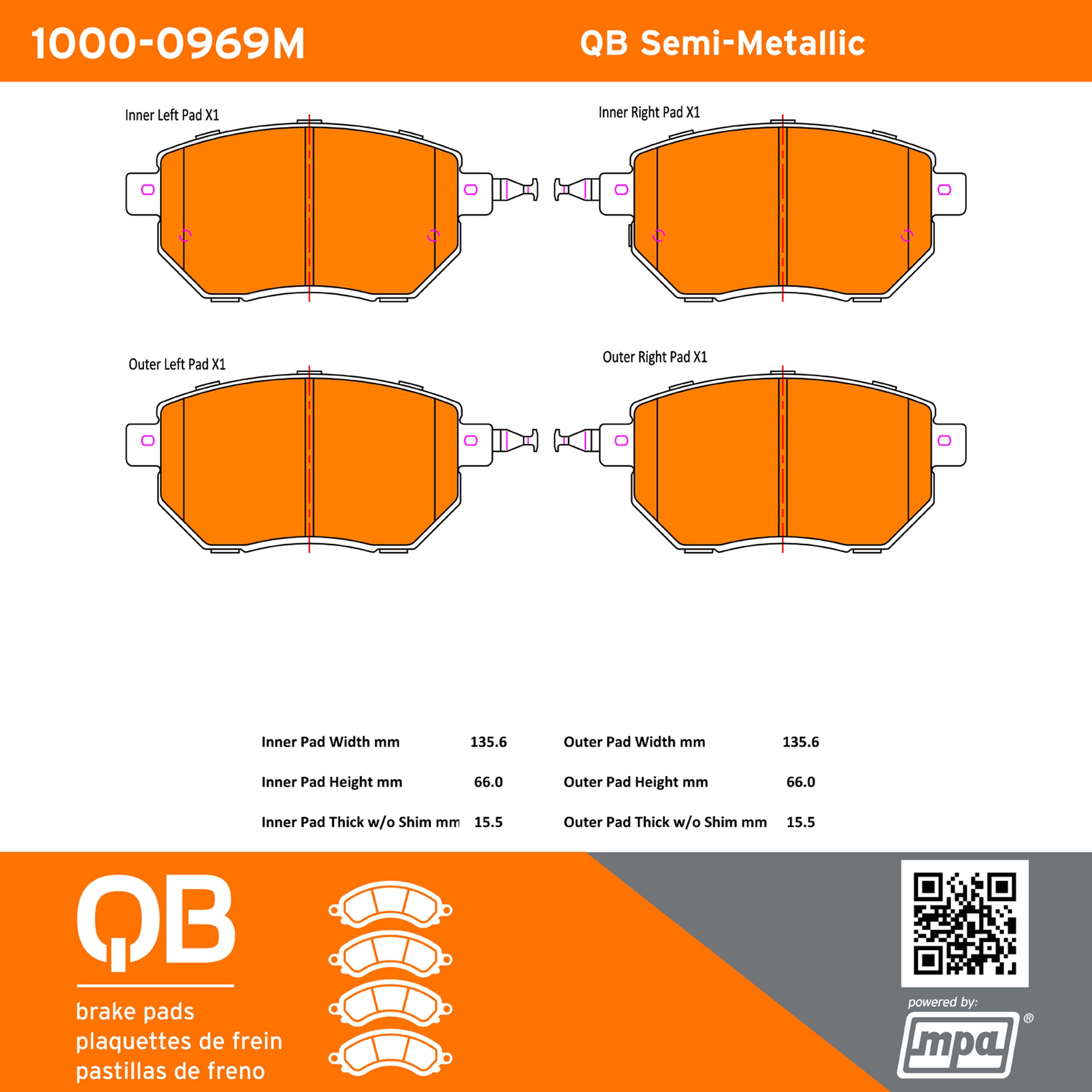 - QB Brake pads deliver like-new stopping power with minimal brake dust and noise.