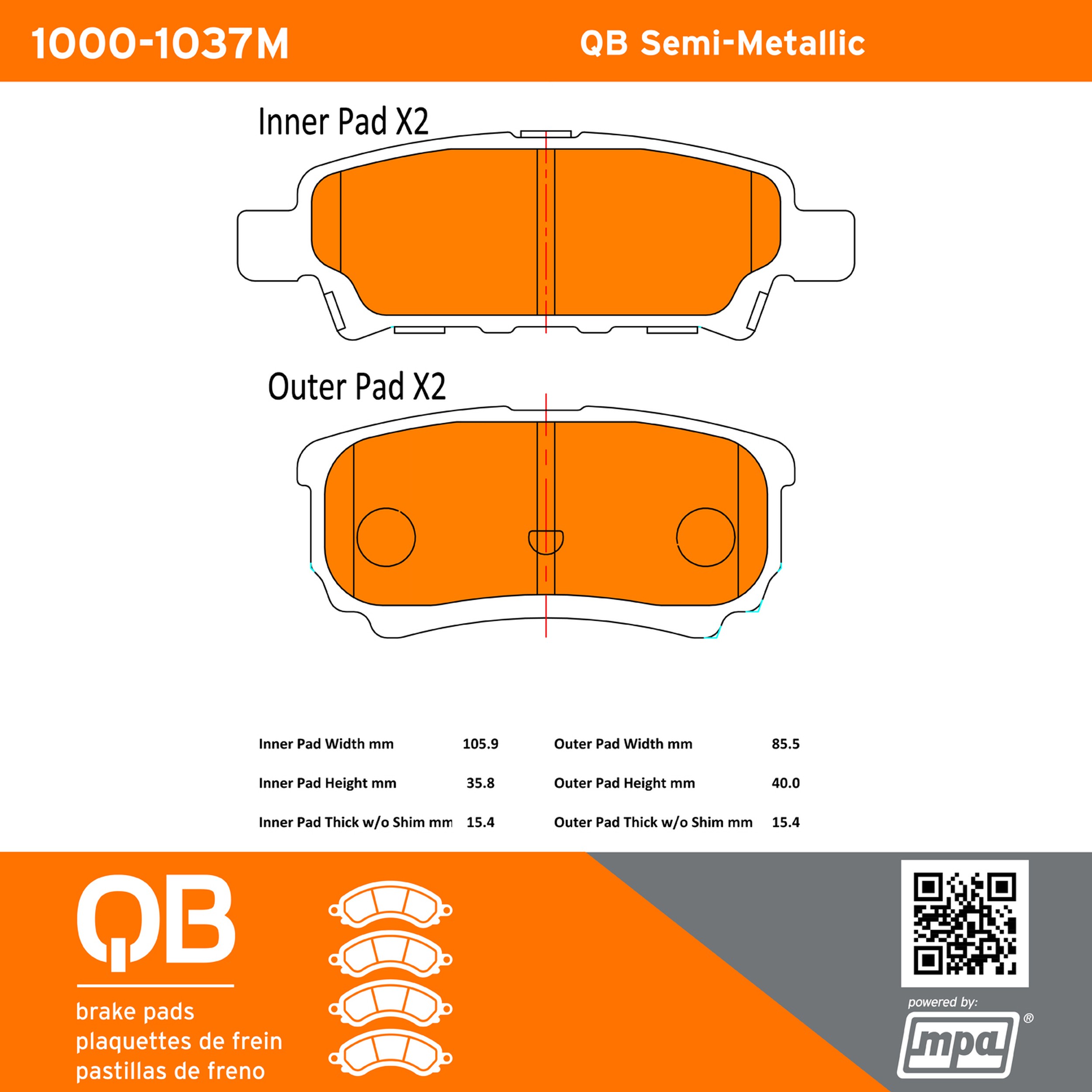 - QB Semi-Metallic Brake Pads