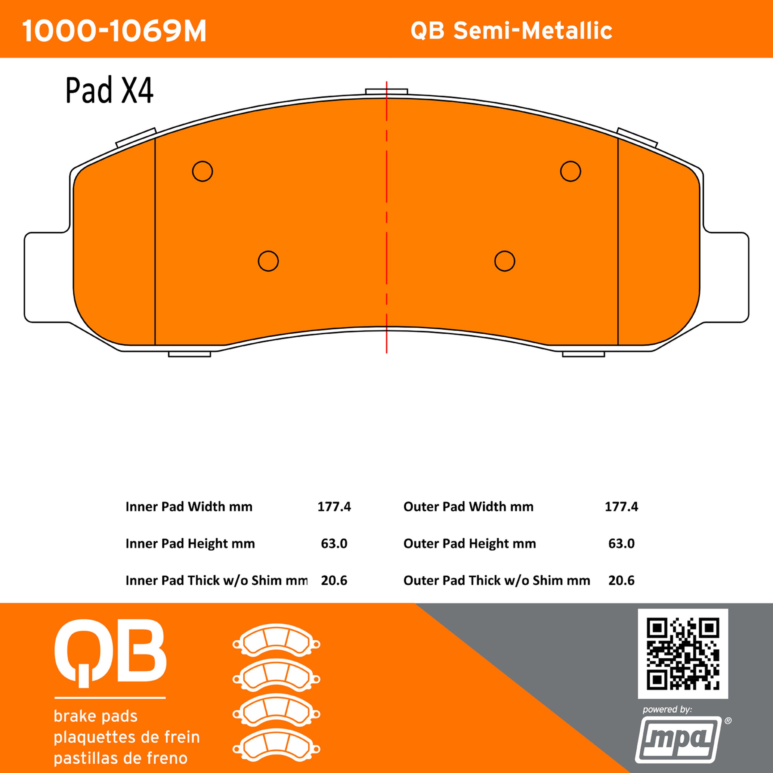 - QB Semi-Metallic Brake Pads