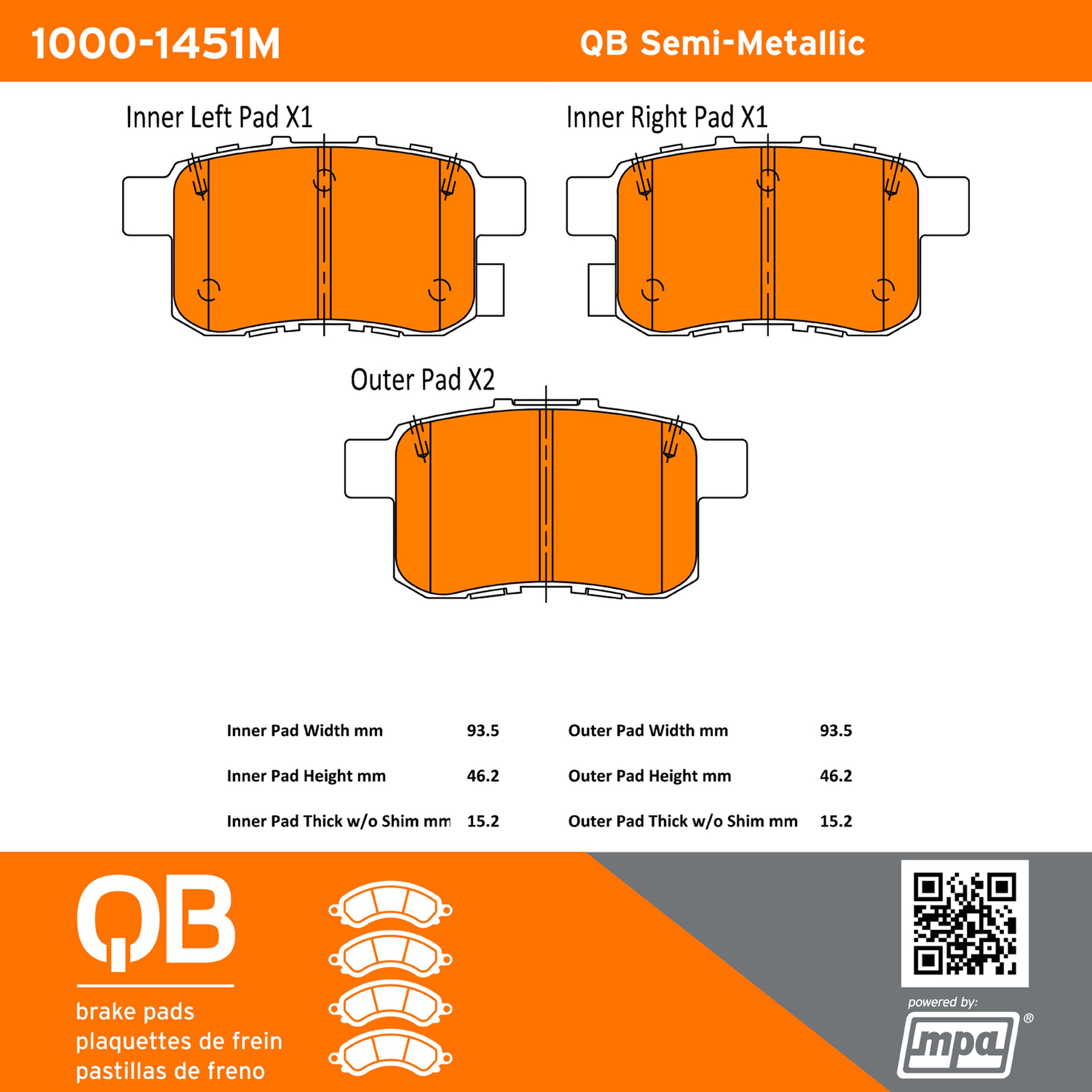 - QB Brake pads deliver like-new stopping power with minimal brake dust and noise.