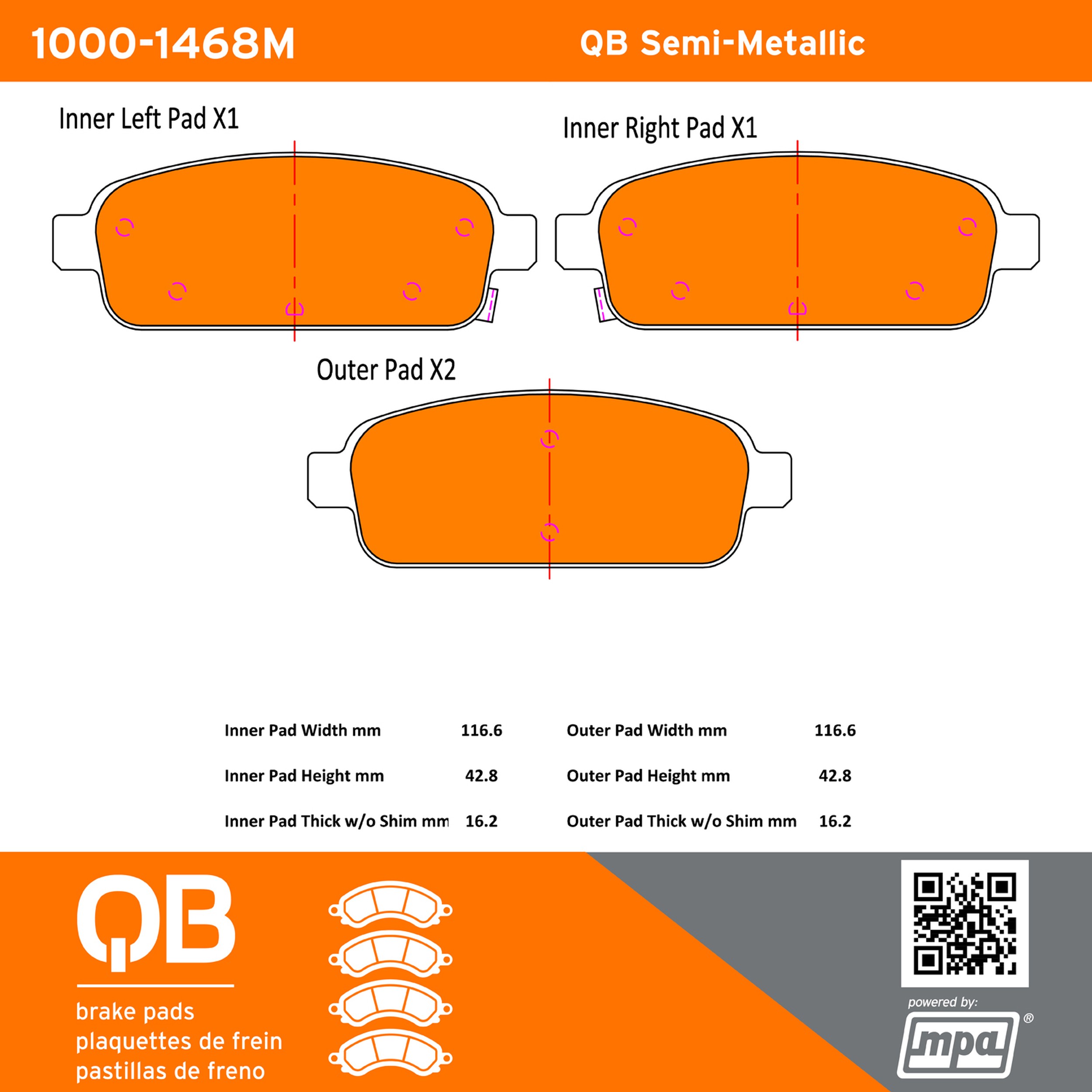 - QB Brake pads deliver like-new stopping power with minimal brake dust and noise.