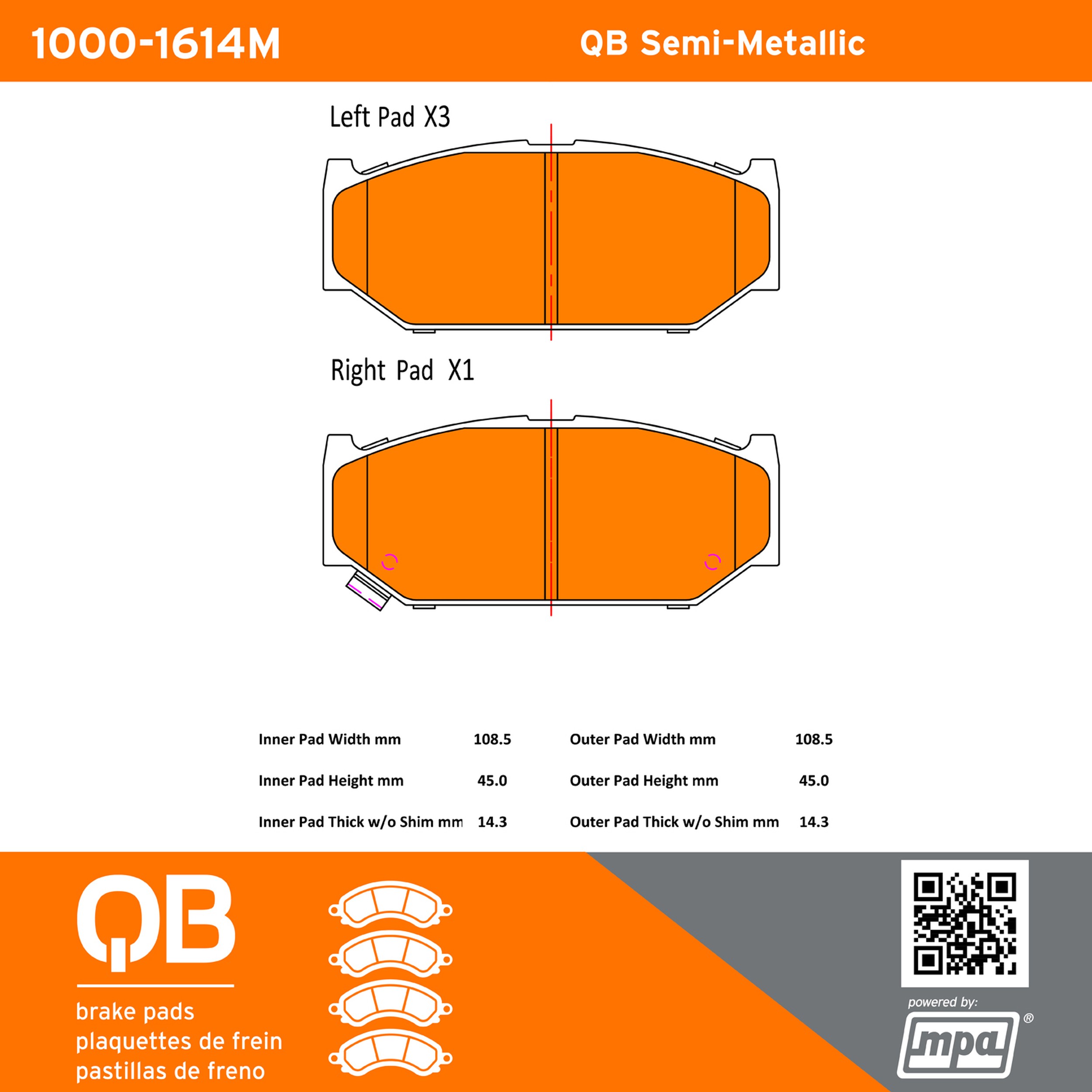 - QB Semi-Metallic Brake Pads