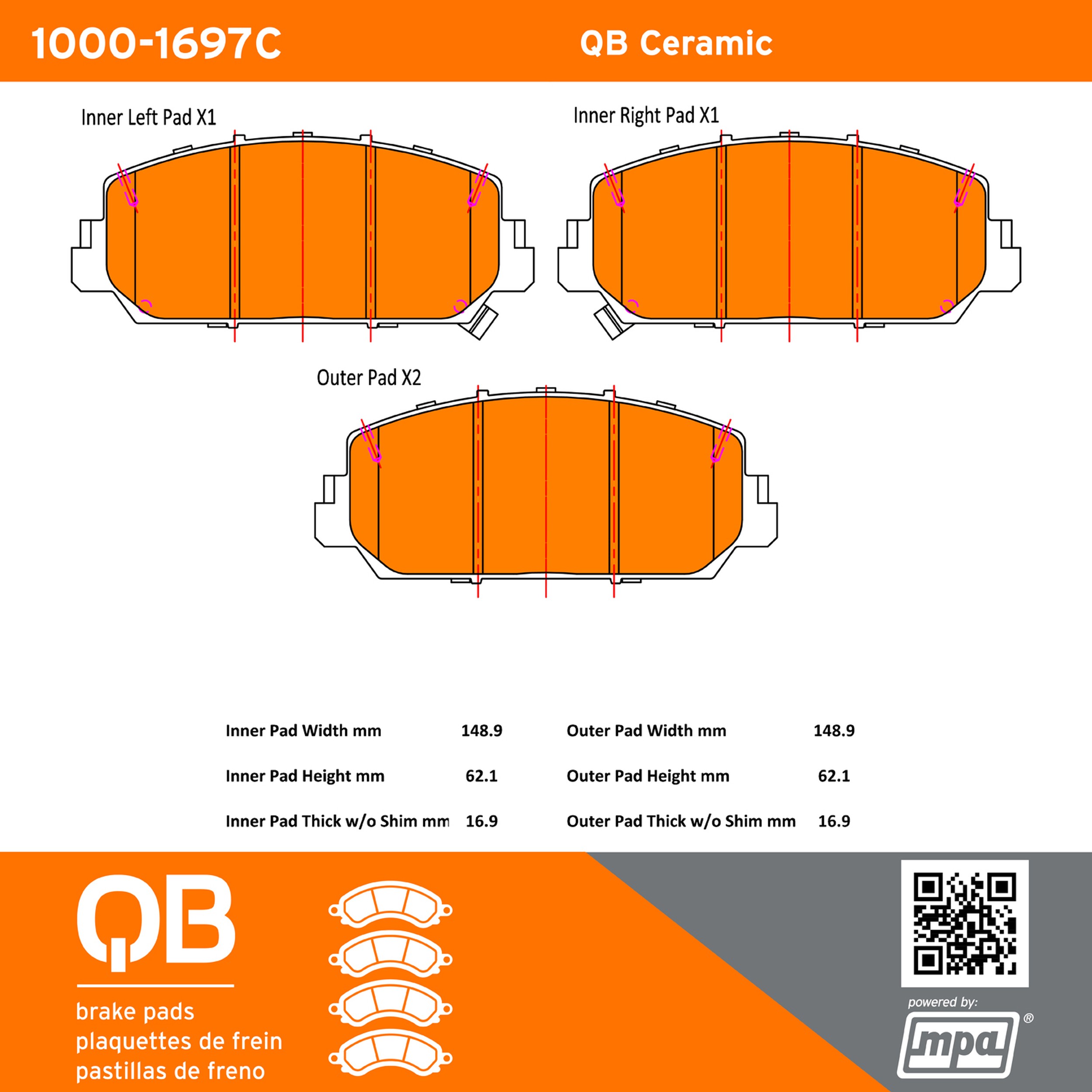 - QB Brake pads deliver like-new stopping power with minimal brake dust and noise.