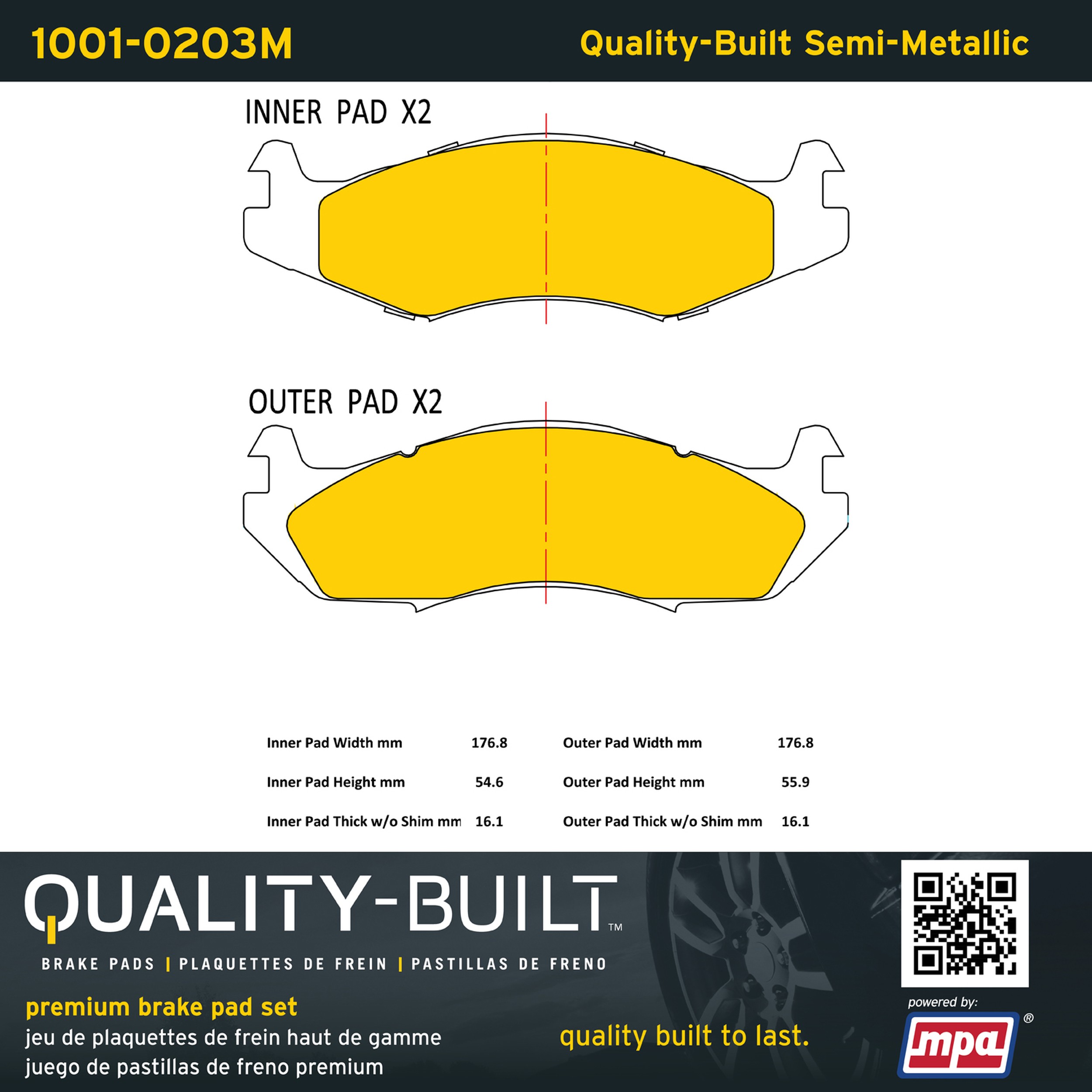 - Quality-Built Premium Brake Pads provide optimized stopping power in all conditions. Application-specific pad formulas remove the guesswork from pad selection by providing friction compounds engineered to restore like-new stopping power for every vehicle. 2025 compliant, copper-free friction formulas deliver dependable performance across a wide thermal range with low brake dust and zero noise.
