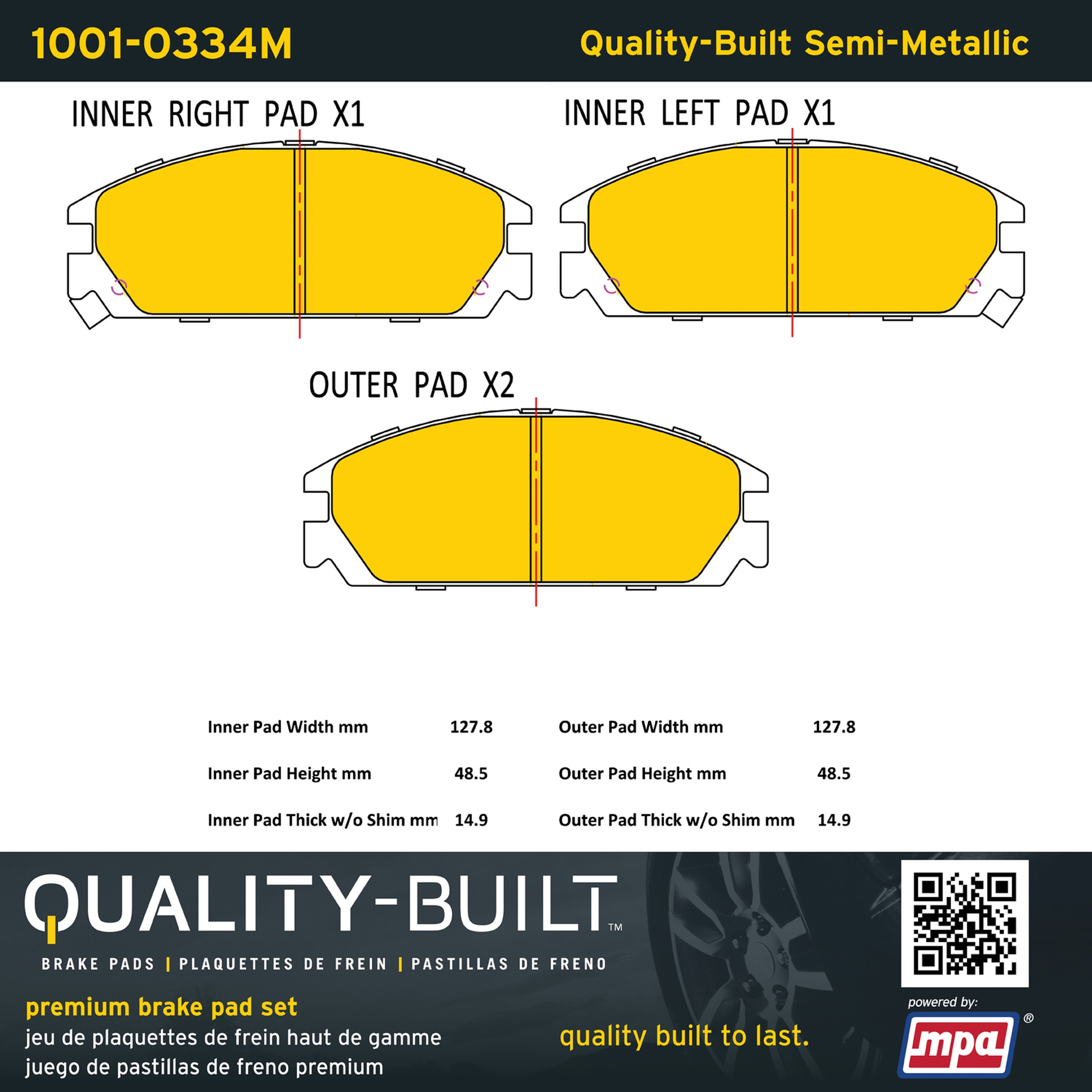 - Quality-Built Premium Brake Pads provide optimized stopping power in all conditions. Application-specific pad formulas remove the guesswork from pad selection by providing friction compounds engineered to restore like-new stopping power for every vehicle. 2025 compliant, copper-free friction formulas deliver dependable performance across a wide thermal range with low brake dust and zero noise.