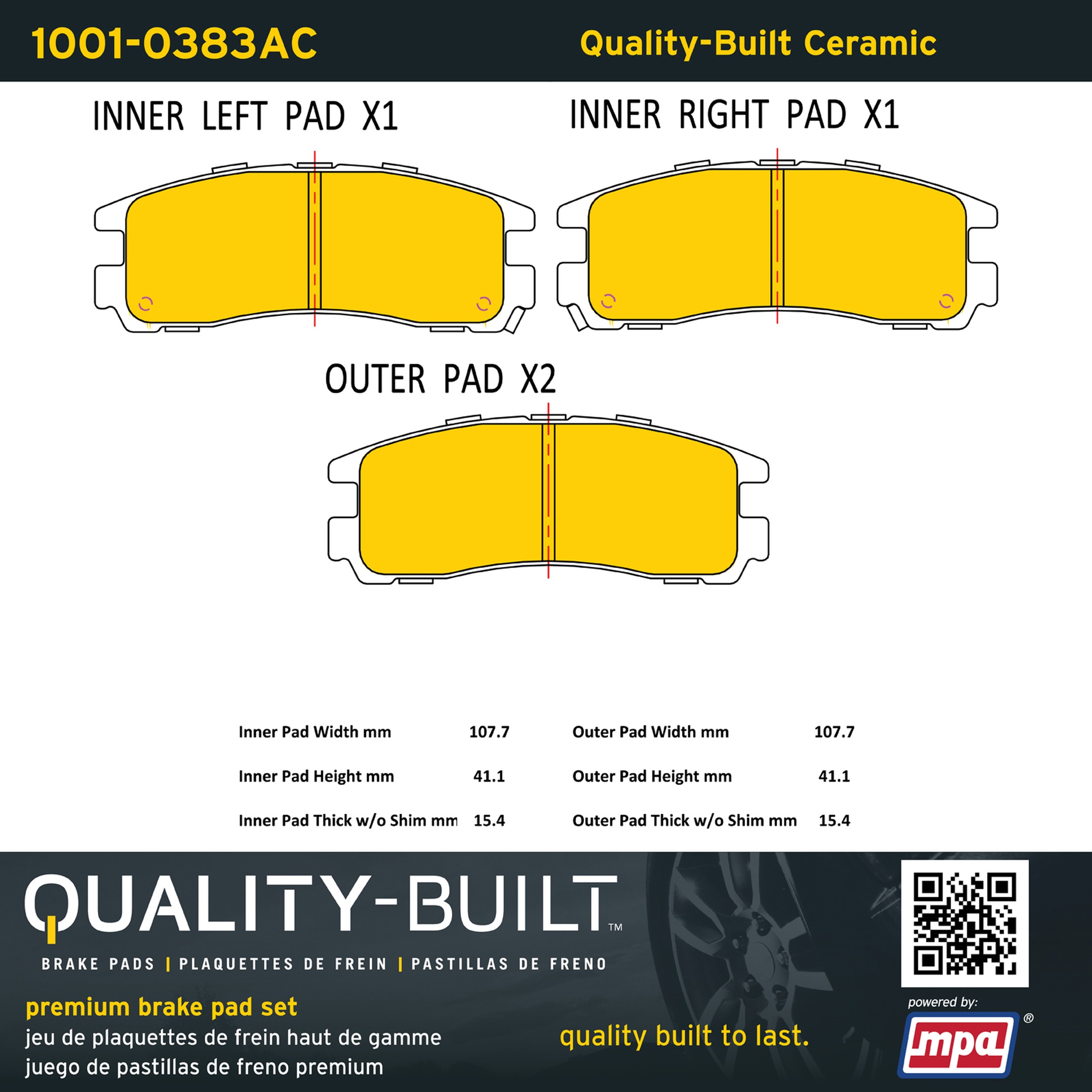 - Quality-Built Premium Brake Pads provide optimized stopping power in all conditions. Application-specific pad formulas remove the guesswork from pad selection by providing friction compounds engineered to restore like-new stopping power for every vehicle. 2025 compliant, copper-free friction formulas deliver dependable performance across a wide thermal range with low brake dust and zero noise.