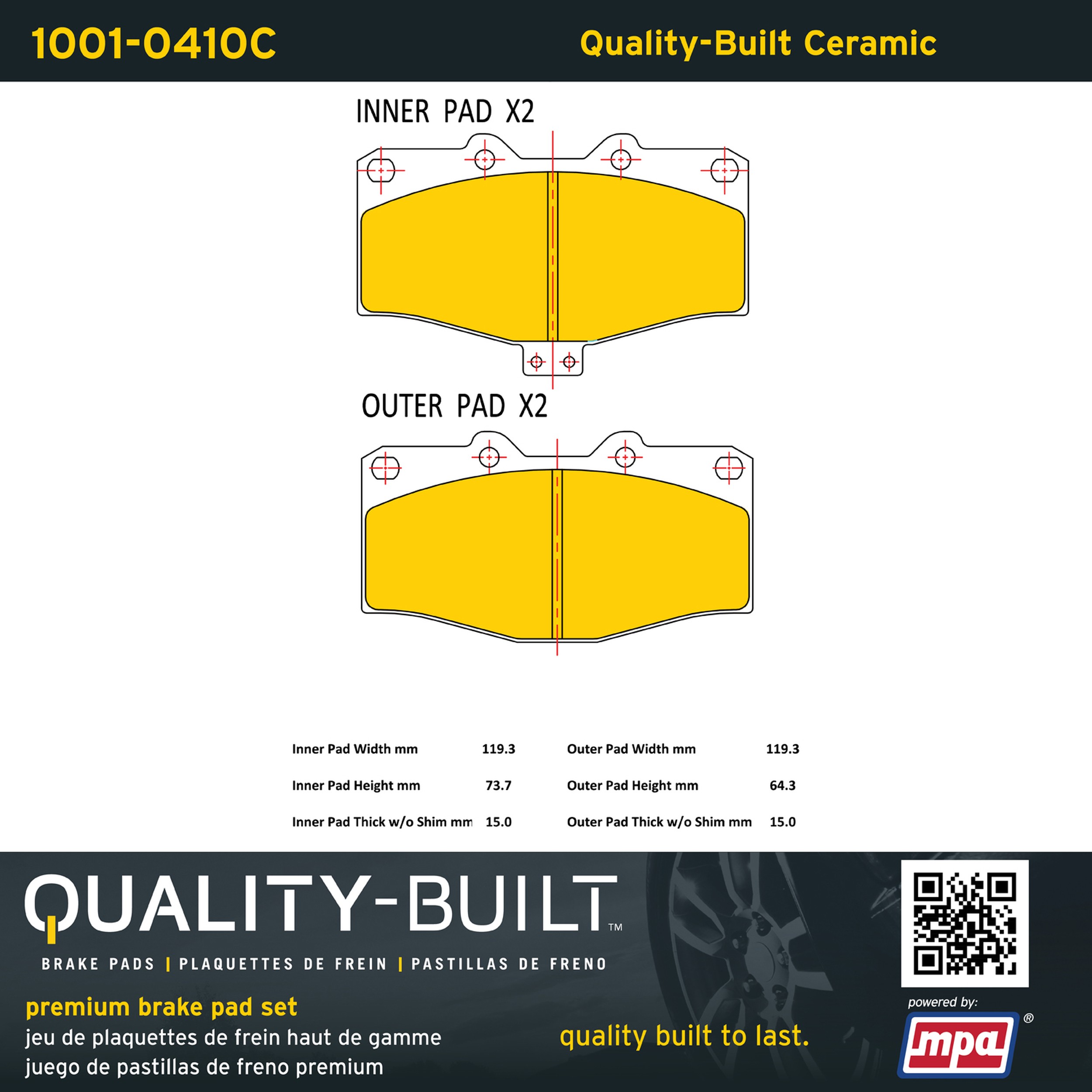 - Quality-Built Premium Brake Pads provide optimized stopping power in all conditions. Application-specific pad formulas remove the guesswork from pad selection by providing friction compounds engineered to restore like-new stopping power for every vehicle. 2025 compliant, copper-free friction formulas deliver dependable performance across a wide thermal range with low brake dust and zero noise.