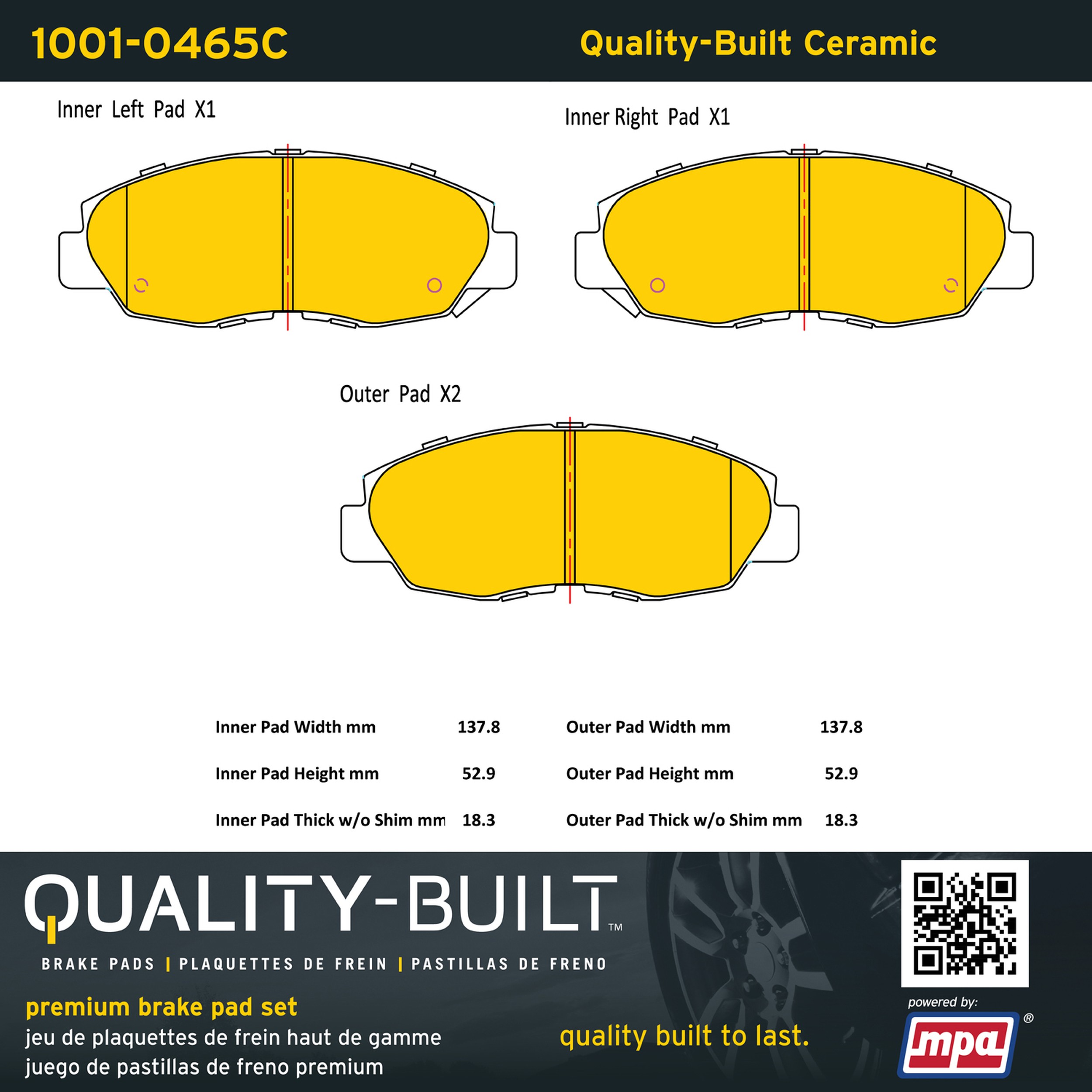 - Quality-Built Premium Brake Pads provide optimized stopping power in all conditions. Application-specific pad formulas remove the guesswork from pad selection by providing friction compounds engineered to restore like-new stopping power for every vehicle. 2025 compliant, copper-free friction formulas deliver dependable performance across a wide thermal range with low brake dust and zero noise.