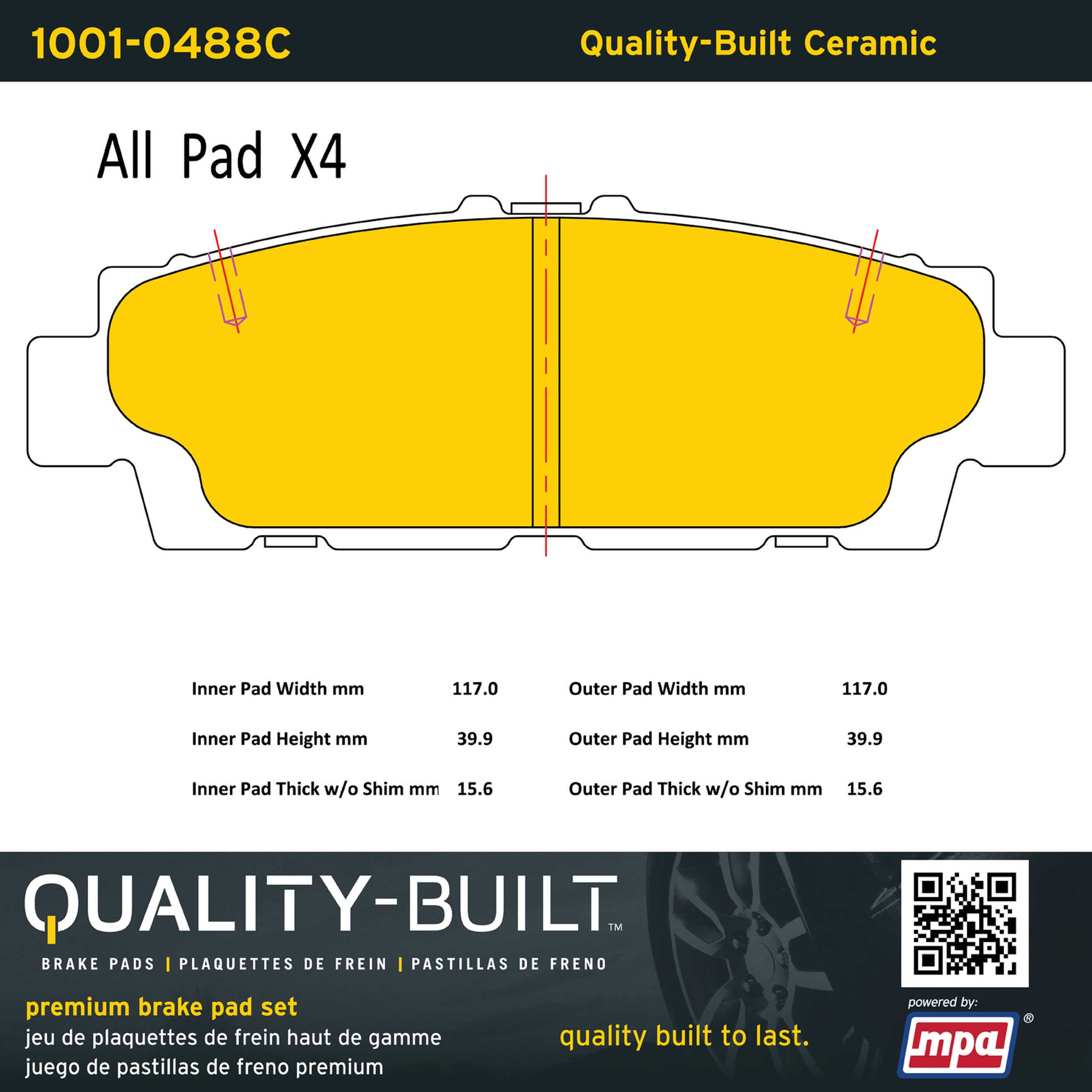 - Quality-Built Premium Brake Pads provide optimized stopping power in all conditions. Application-specific pad formulas remove the guesswork from pad selection by providing friction compounds engineered to restore like-new stopping power for every vehicle. 2025 compliant, copper-free friction formulas deliver dependable performance across a wide thermal range with low brake dust and zero noise.