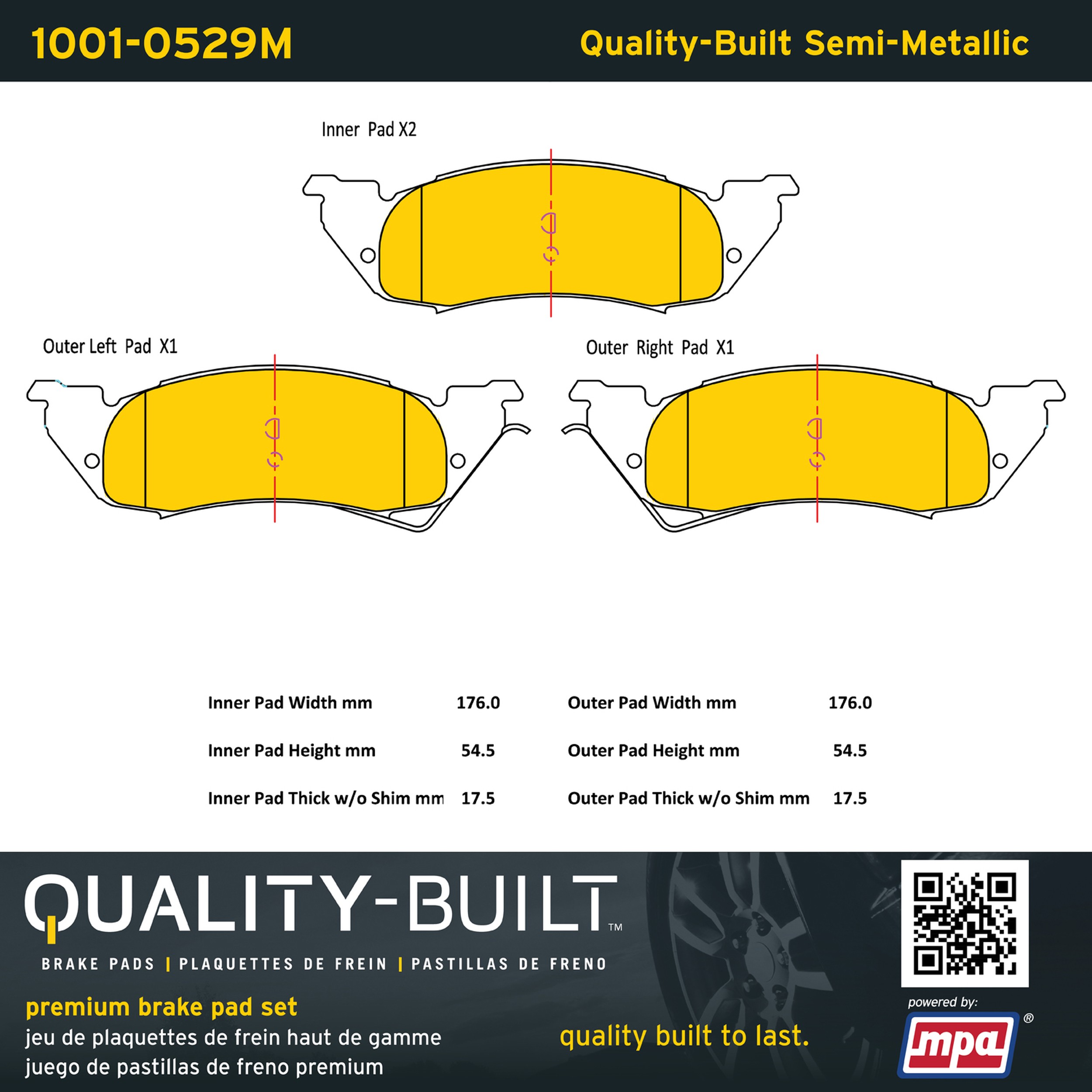- Quality-Built Premium Brake Pads provide optimized stopping power in all conditions. Application-specific pad formulas remove the guesswork from pad selection by providing friction compounds engineered to restore like-new stopping power for every vehicle. 2025 compliant, copper-free friction formulas deliver dependable performance across a wide thermal range with low brake dust and zero noise.