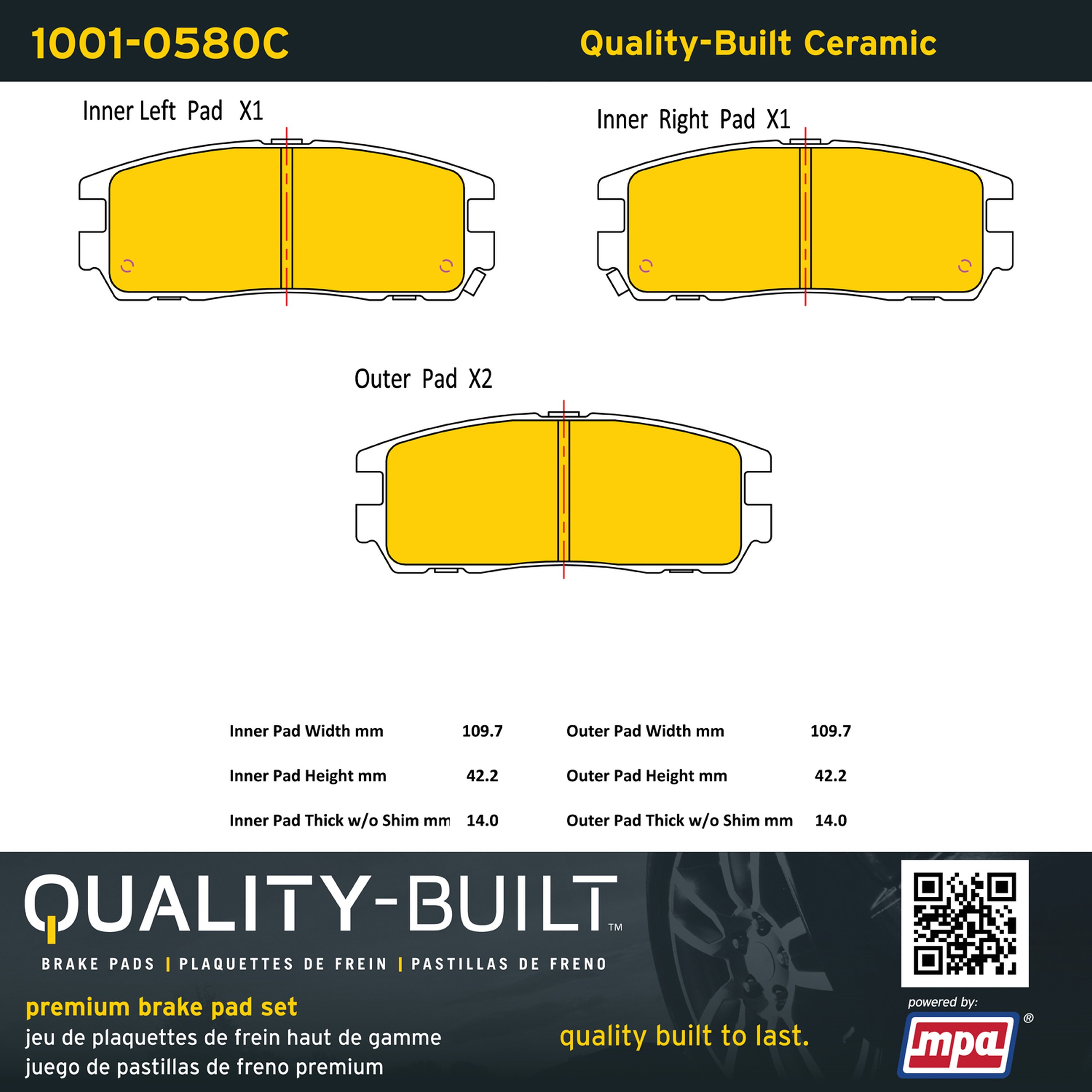 - Quality-Built Premium Brake Pads provide optimized stopping power in all conditions. Application-specific pad formulas remove the guesswork from pad selection by providing friction compounds engineered to restore like-new stopping power for every vehicle. 2025 compliant, copper-free friction formulas deliver dependable performance across a wide thermal range with low brake dust and zero noise.