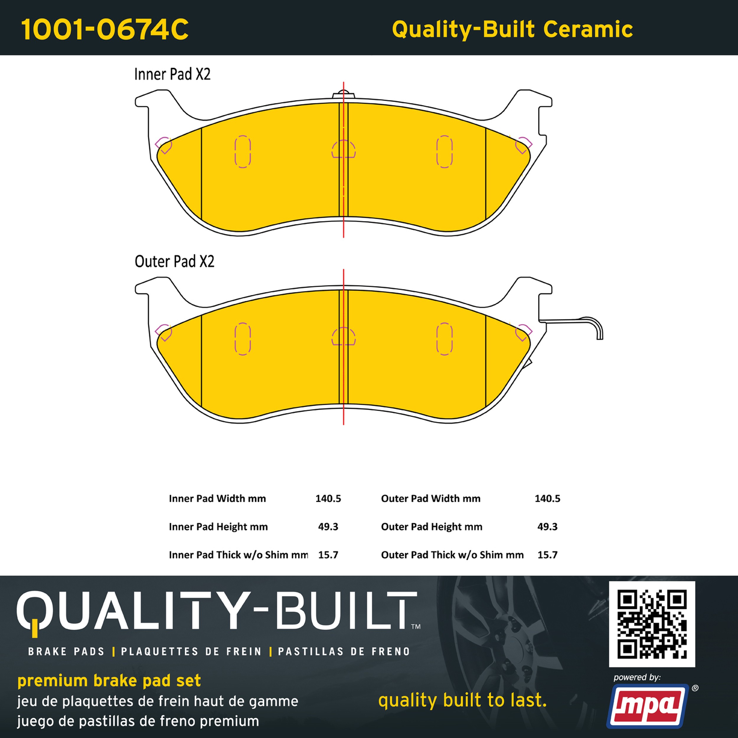 - Quality-Built Premium Brake Pads provide optimized stopping power in all conditions. Application-specific pad formulas remove the guesswork from pad selection by providing friction compounds engineered to restore like-new stopping power for every vehicle. 2025 compliant, copper-free friction formulas deliver dependable performance across a wide thermal range with low brake dust and zero noise.