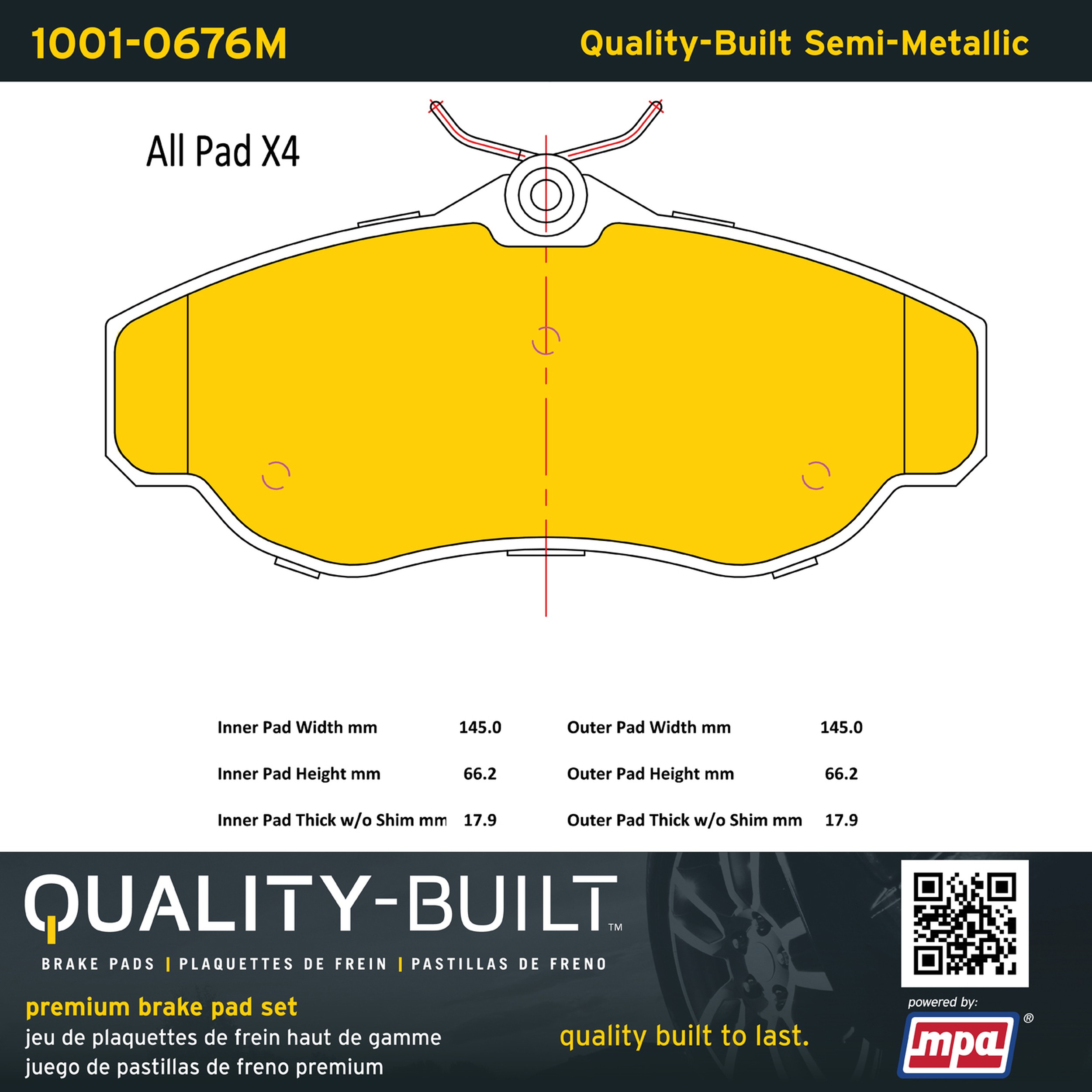 - Quality-Built Premium Brake Pads provide optimized stopping power in all conditions. Application-specific pad formulas remove the guesswork from pad selection by providing friction compounds engineered to restore like-new stopping power for every vehicle. 2025 compliant, copper-free friction formulas deliver dependable performance across a wide thermal range with low brake dust and zero noise.