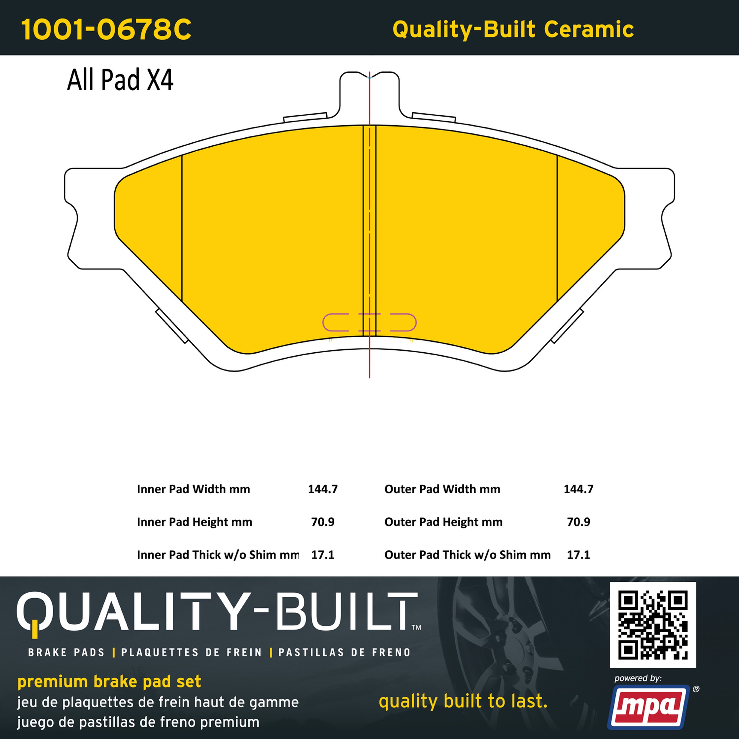 - Quality-Built Premium Brake Pads provide optimized stopping power in all conditions. Application-specific pad formulas remove the guesswork from pad selection by providing friction compounds engineered to restore like-new stopping power for every vehicle. 2025 compliant, copper-free friction formulas deliver dependable performance across a wide thermal range with low brake dust and zero noise.