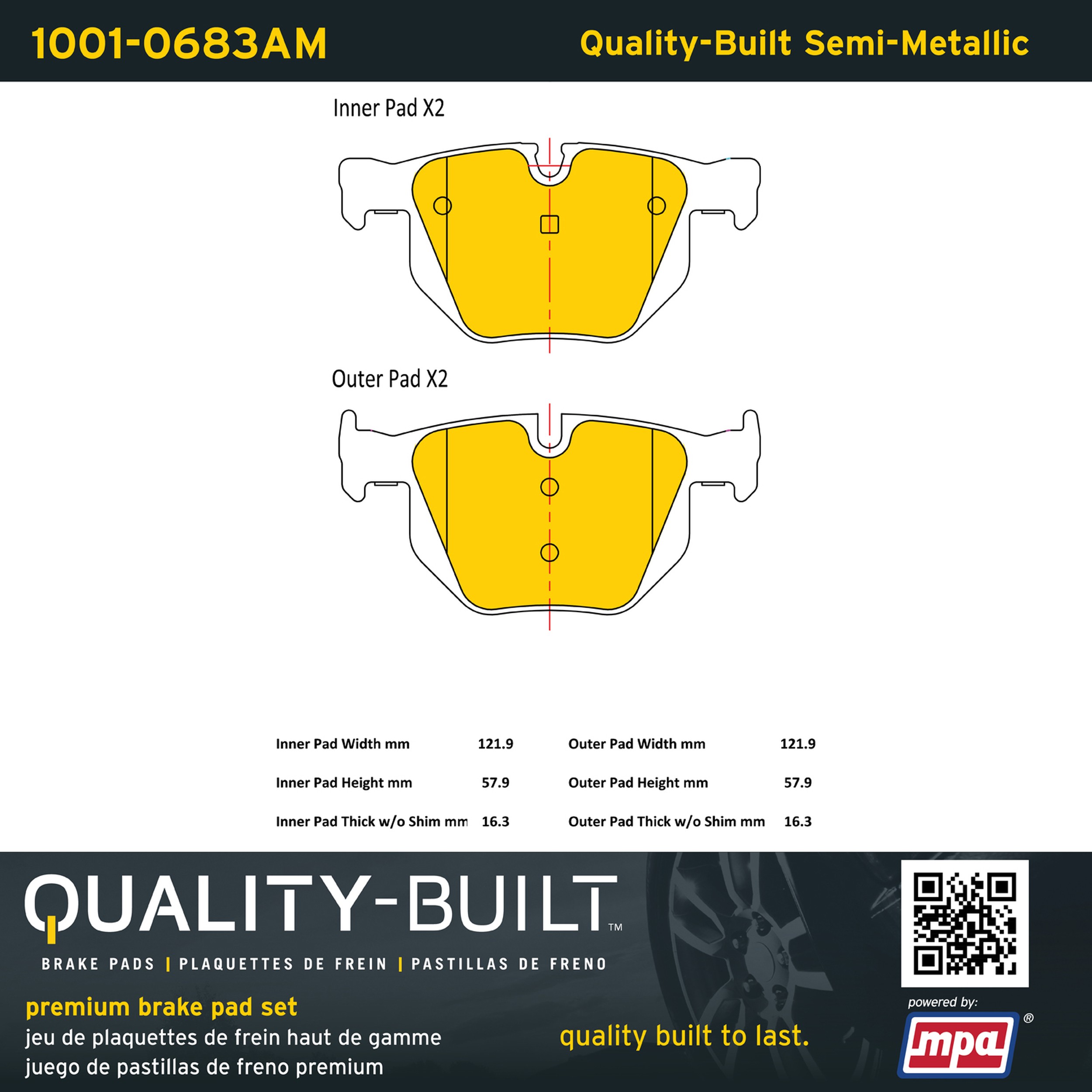 - Quality-Built Premium Brake Pads provide optimized stopping power in all conditions. Application-specific pad formulas remove the guesswork from pad selection by providing friction compounds engineered to restore like-new stopping power for every vehicle. 2025 compliant, copper-free friction formulas deliver dependable performance across a wide thermal range with low brake dust and zero noise.