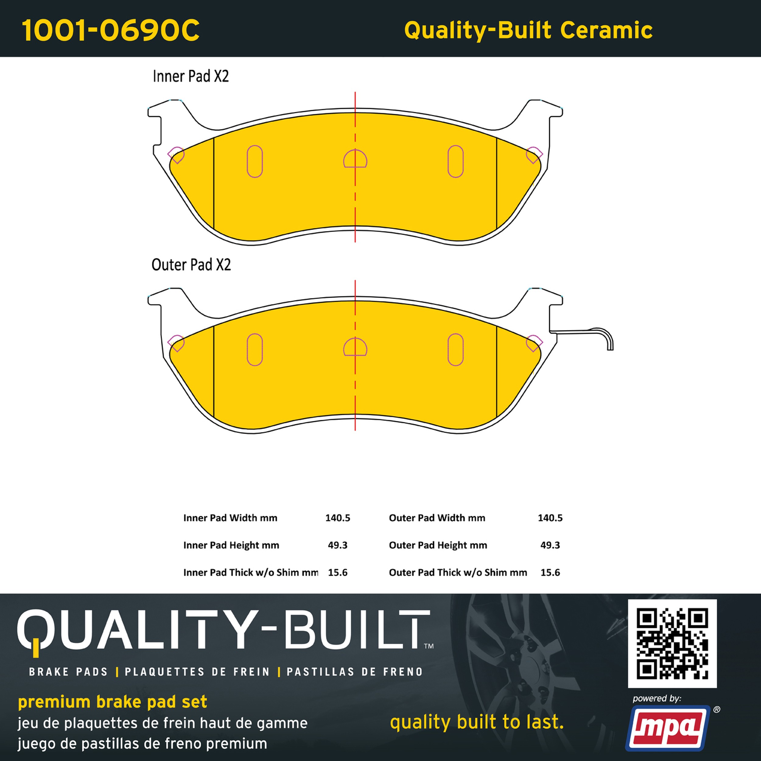 - Quality-Built Premium Brake Pads provide optimized stopping power in all conditions. Application-specific pad formulas remove the guesswork from pad selection by providing friction compounds engineered to restore like-new stopping power for every vehicle. 2025 compliant, copper-free friction formulas deliver dependable performance across a wide thermal range with low brake dust and zero noise.