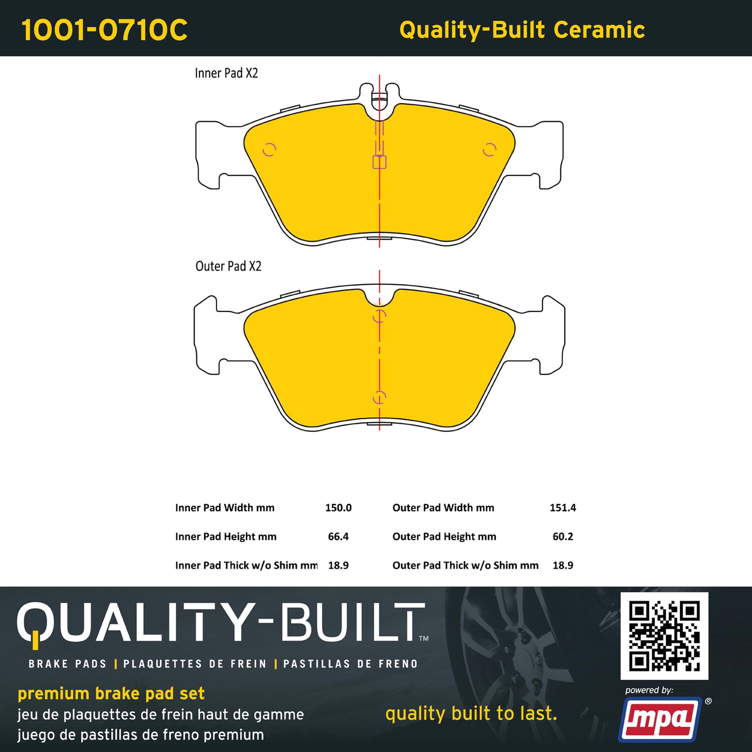 • Quality-Built Premium Brake Pads provide optimized stopping power in all conditions. Application-specific pad formulas remove the guesswork from pad selection by providing friction compounds engineered to restore like-new stopping power for every vehicle. 2025 compliant, copper-free friction formulas deliver dependable performance across a wide thermal range with low brake dust and zero noise.