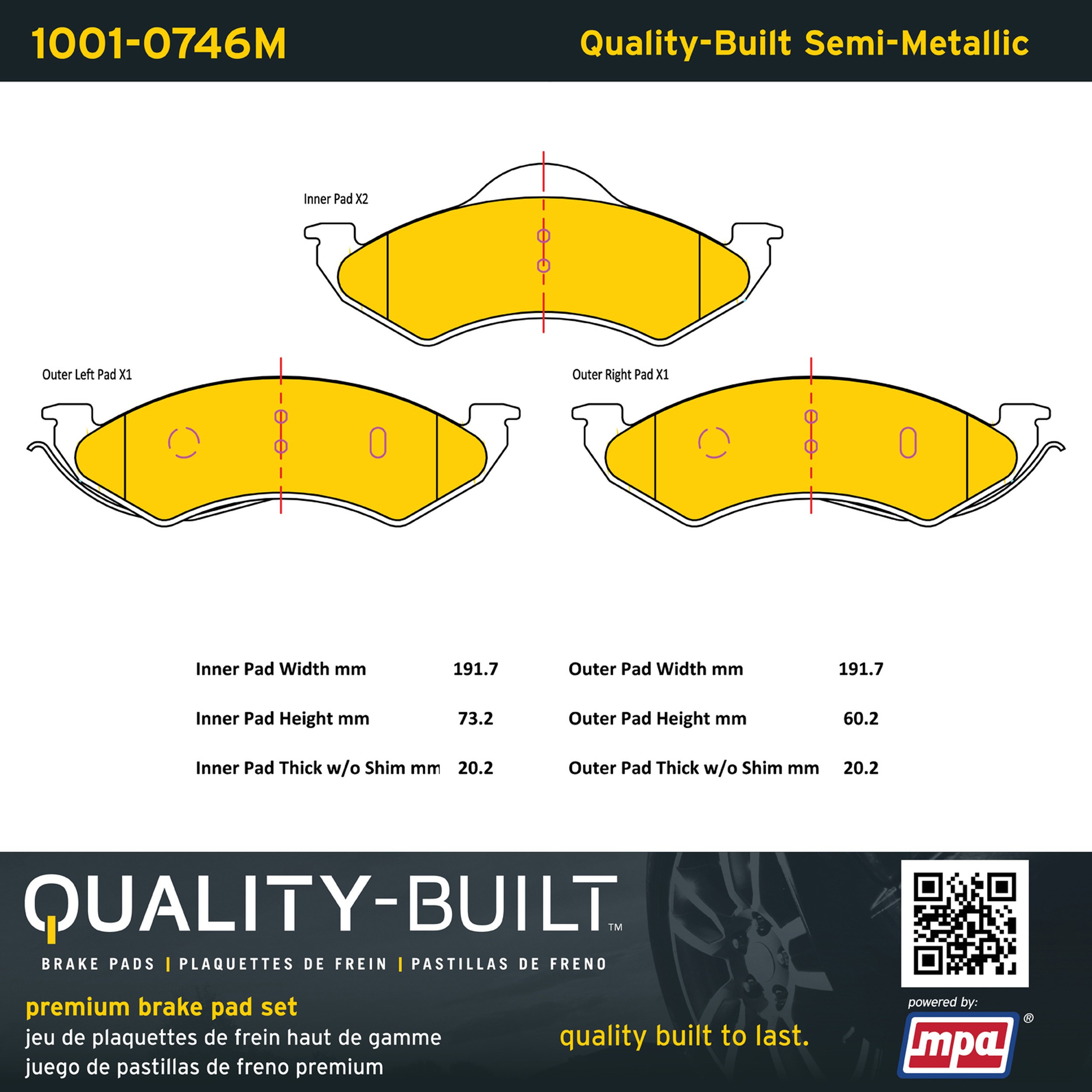 - Quality-Built Premium Brake Pads provide optimized stopping power in all conditions. Application-specific pad formulas remove the guesswork from pad selection by providing friction compounds engineered to restore like-new stopping power for every vehicle. 2025 compliant, copper-free friction formulas deliver dependable performance across a wide thermal range with low brake dust and zero noise.