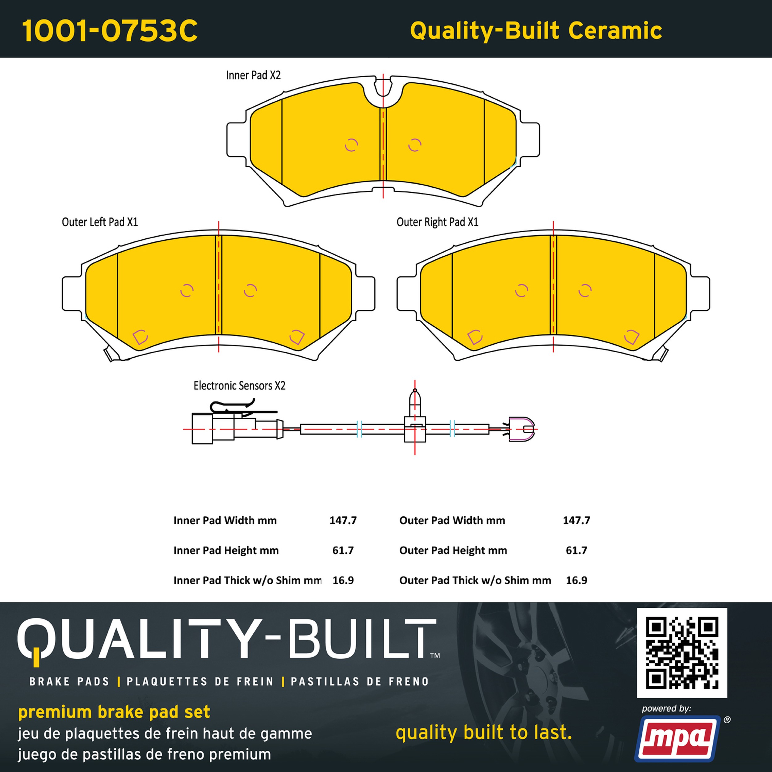- Quality-Built Premium Brake Pads provide optimized stopping power in all conditions. Application-specific pad formulas remove the guesswork from pad selection by providing friction compounds engineered to restore like-new stopping power for every vehicle. 2025 compliant, copper-free friction formulas deliver dependable performance across a wide thermal range with low brake dust and zero noise.
