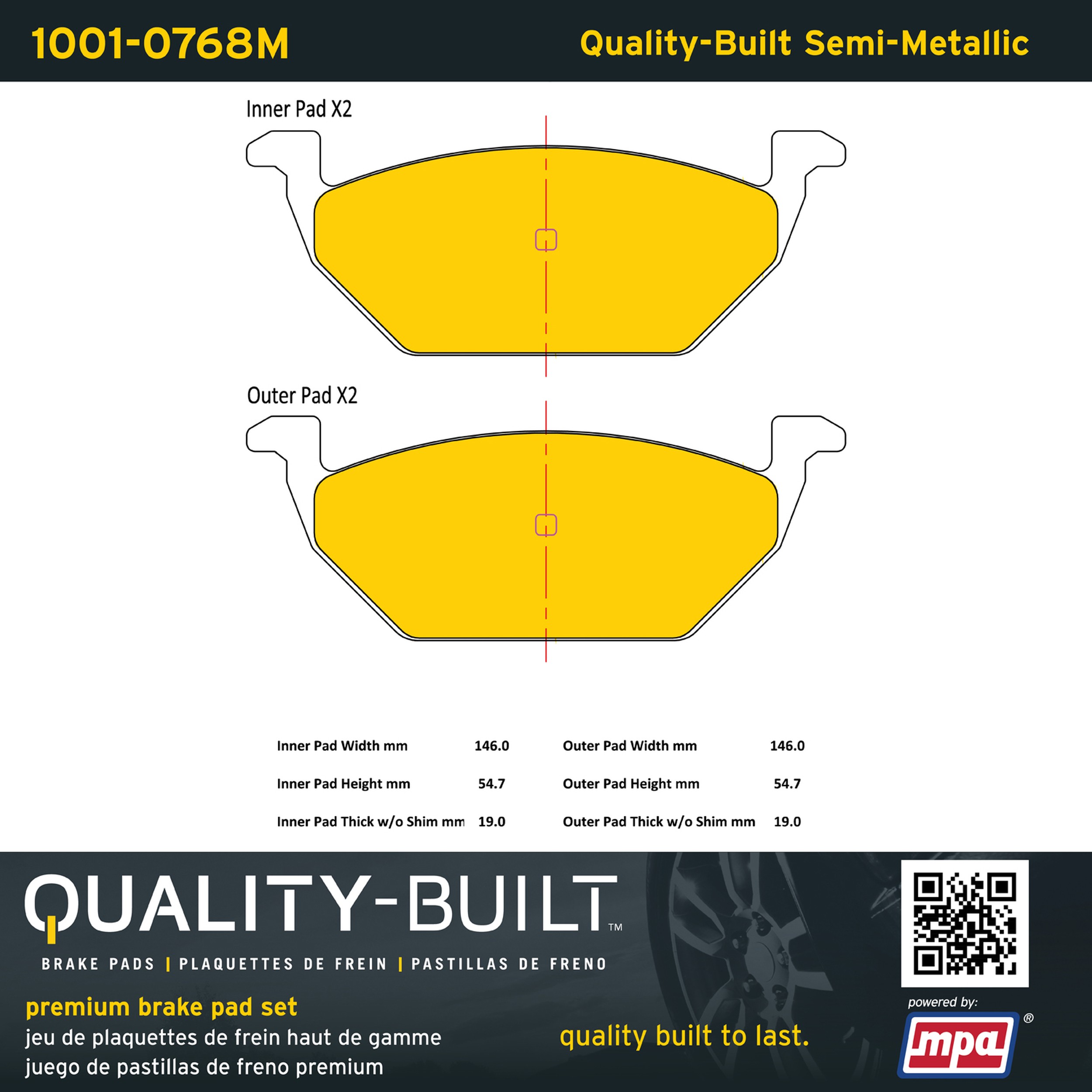 - Quality-Built Premium Brake Pads provide optimized stopping power in all conditions. Application-specific pad formulas remove the guesswork from pad selection by providing friction compounds engineered to restore like-new stopping power for every vehicle. 2025 compliant, copper-free friction formulas deliver dependable performance across a wide thermal range with low brake dust and zero noise.