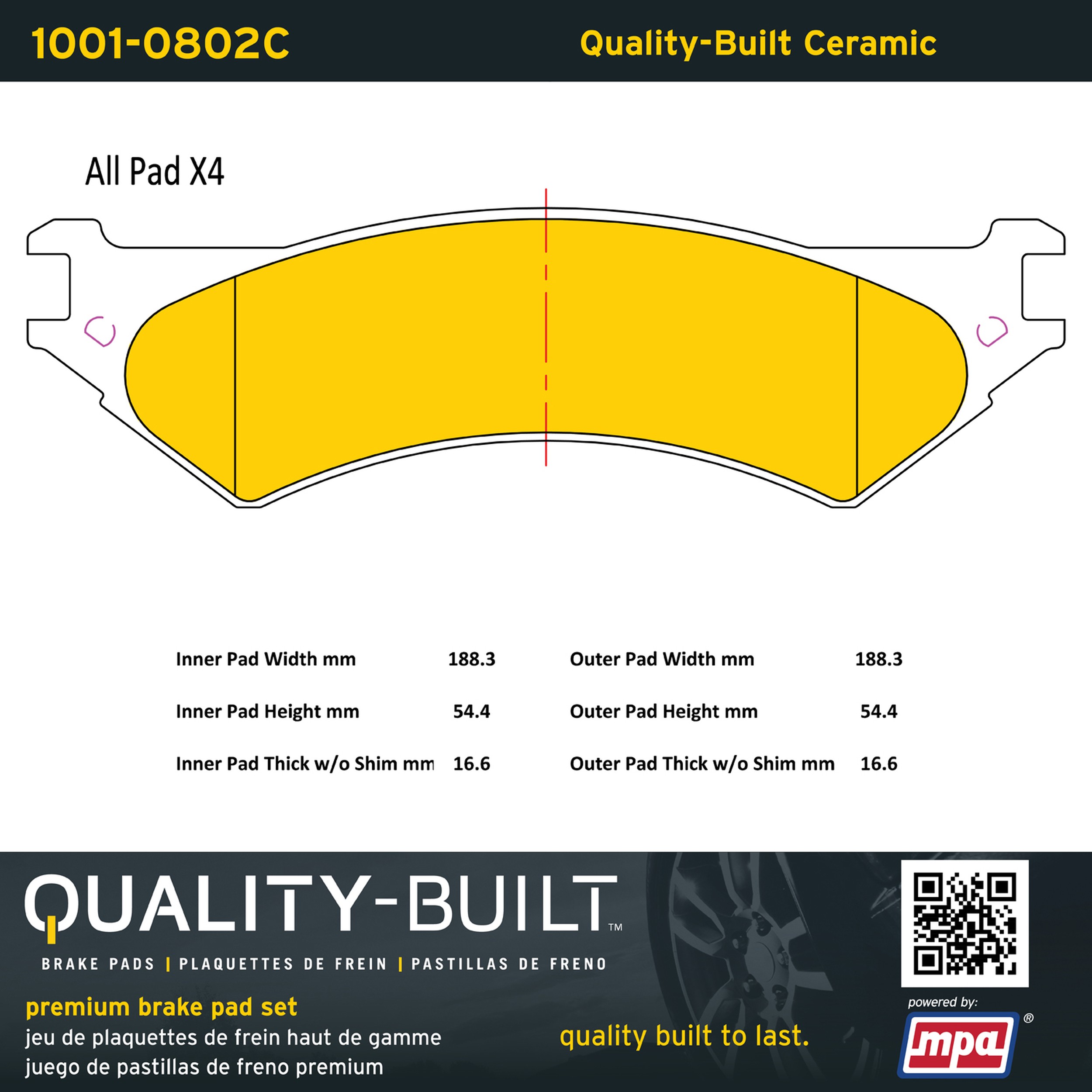 - Quality-Built Premium Brake Pads provide optimized stopping power in all conditions. Application-specific pad formulas remove the guesswork from pad selection by providing friction compounds engineered to restore like-new stopping power for every vehicle. 2025 compliant, copper-free friction formulas deliver dependable performance across a wide thermal range with low brake dust and zero noise.