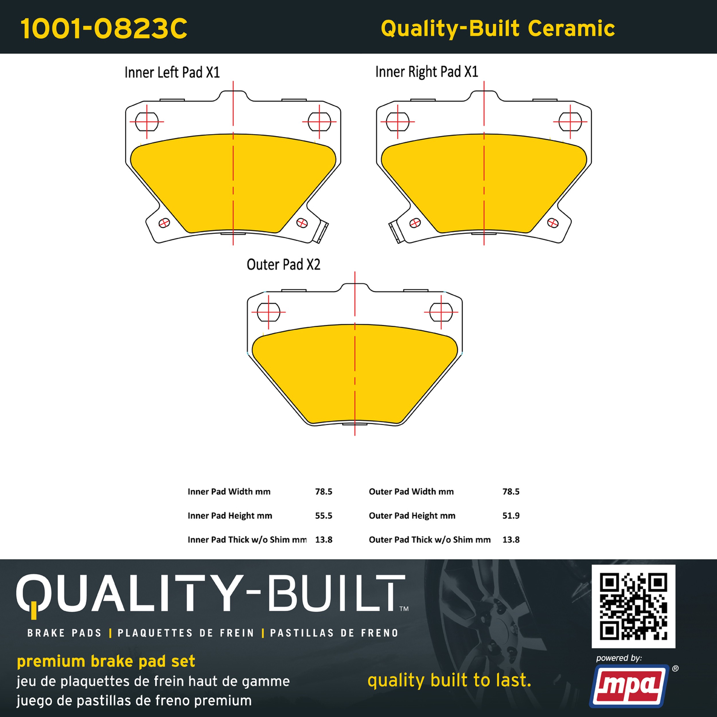 - Quality-Built Premium Brake Pads provide optimized stopping power in all conditions. Application-specific pad formulas remove the guesswork from pad selection by providing friction compounds engineered to restore like-new stopping power for every vehicle. 2025 compliant, copper-free friction formulas deliver dependable performance across a wide thermal range with low brake dust and zero noise.