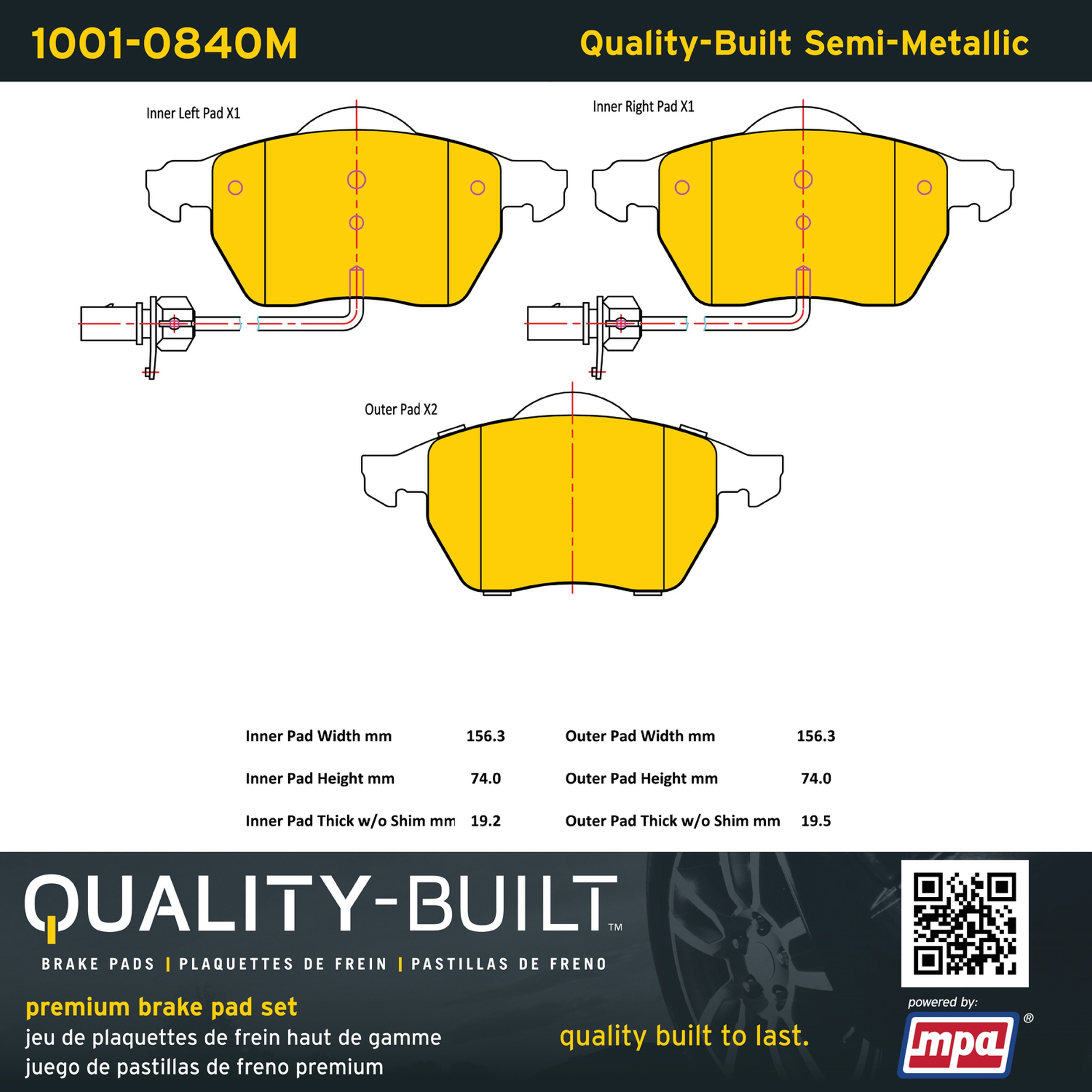- Quality-Built Premium Brake Pads provide optimized stopping power in all conditions. Application-specific pad formulas remove the guesswork from pad selection by providing friction compounds engineered to restore like-new stopping power for every vehicle. 2025 compliant, copper-free friction formulas deliver dependable performance across a wide thermal range with low brake dust and zero noise.