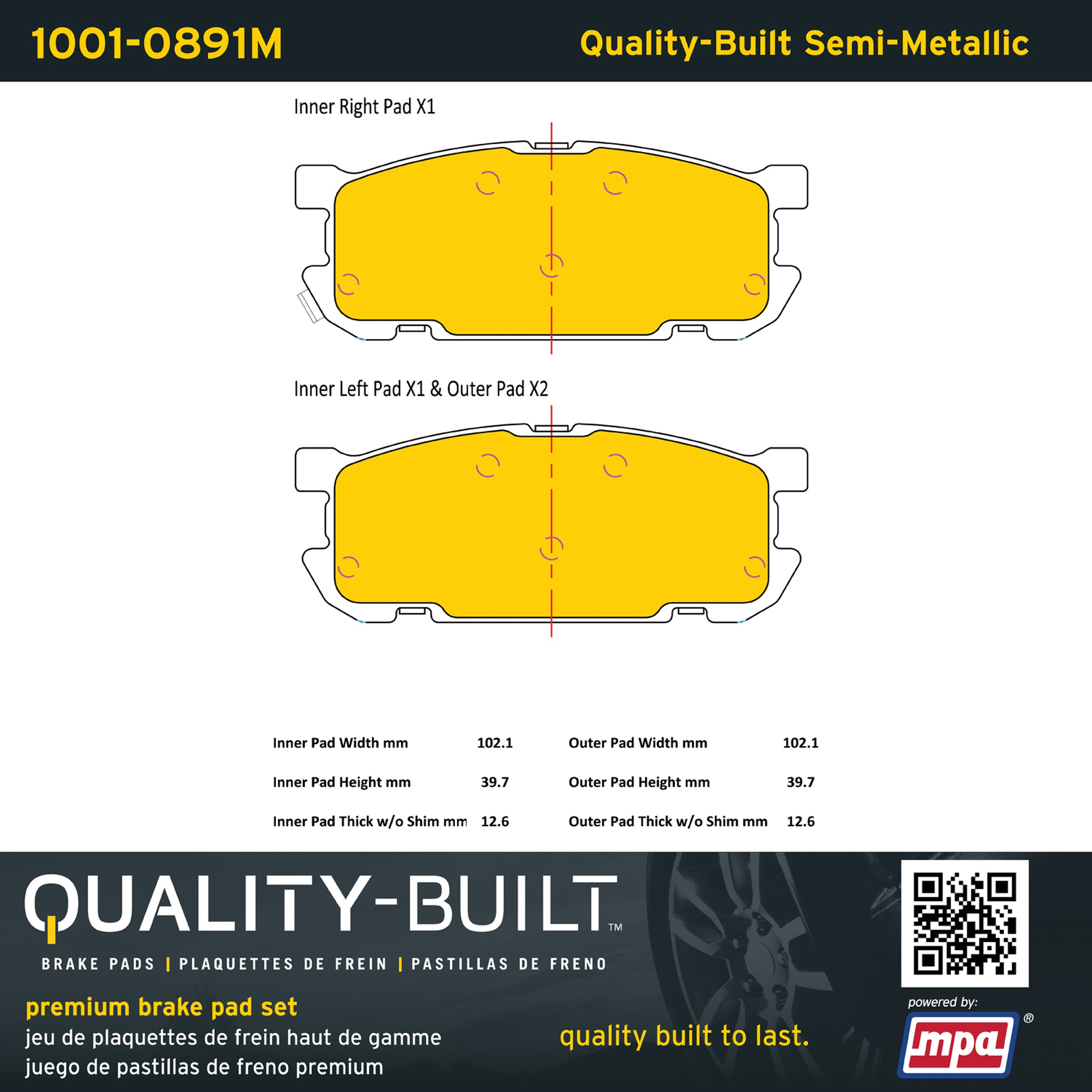 - Quality-Built Premium Brake Pads provide optimized stopping power in all conditions. Application-specific pad formulas remove the guesswork from pad selection by providing friction compounds engineered to restore like-new stopping power for every vehicle. 2025 compliant, copper-free friction formulas deliver dependable performance across a wide thermal range with low brake dust and zero noise.