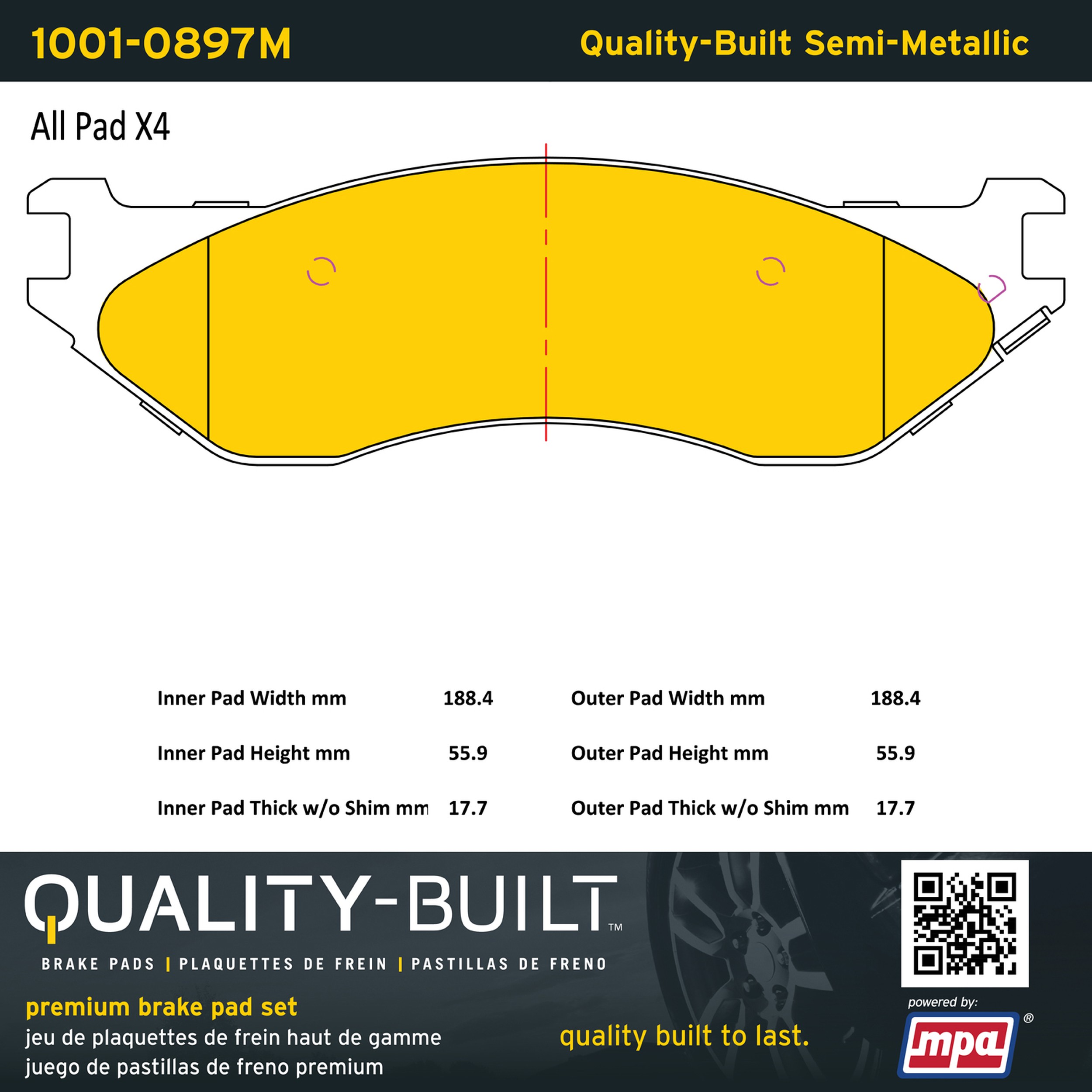 - Quality-Built Premium Brake Pads provide optimized stopping power in all conditions. Application-specific pad formulas remove the guesswork from pad selection by providing friction compounds engineered to restore like-new stopping power for every vehicle. 2025 compliant, copper-free friction formulas deliver dependable performance across a wide thermal range with low brake dust and zero noise.