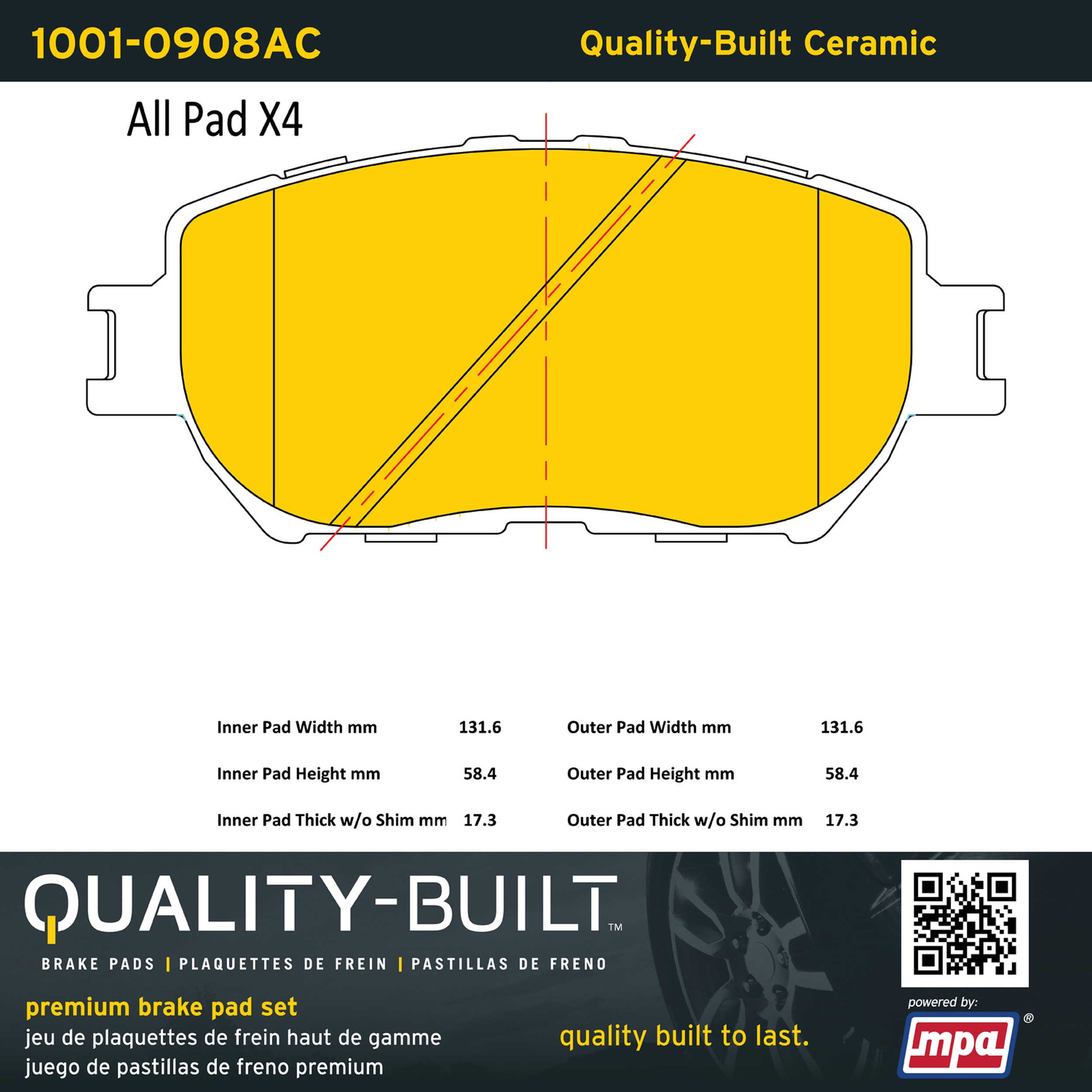 - Quality-Built Premium Brake Pads provide optimized stopping power in all conditions. Application-specific pad formulas remove the guesswork from pad selection by providing friction compounds engineered to restore like-new stopping power for every vehicle. 2025 compliant, copper-free friction formulas deliver dependable performance across a wide thermal range with low brake dust and zero noise.