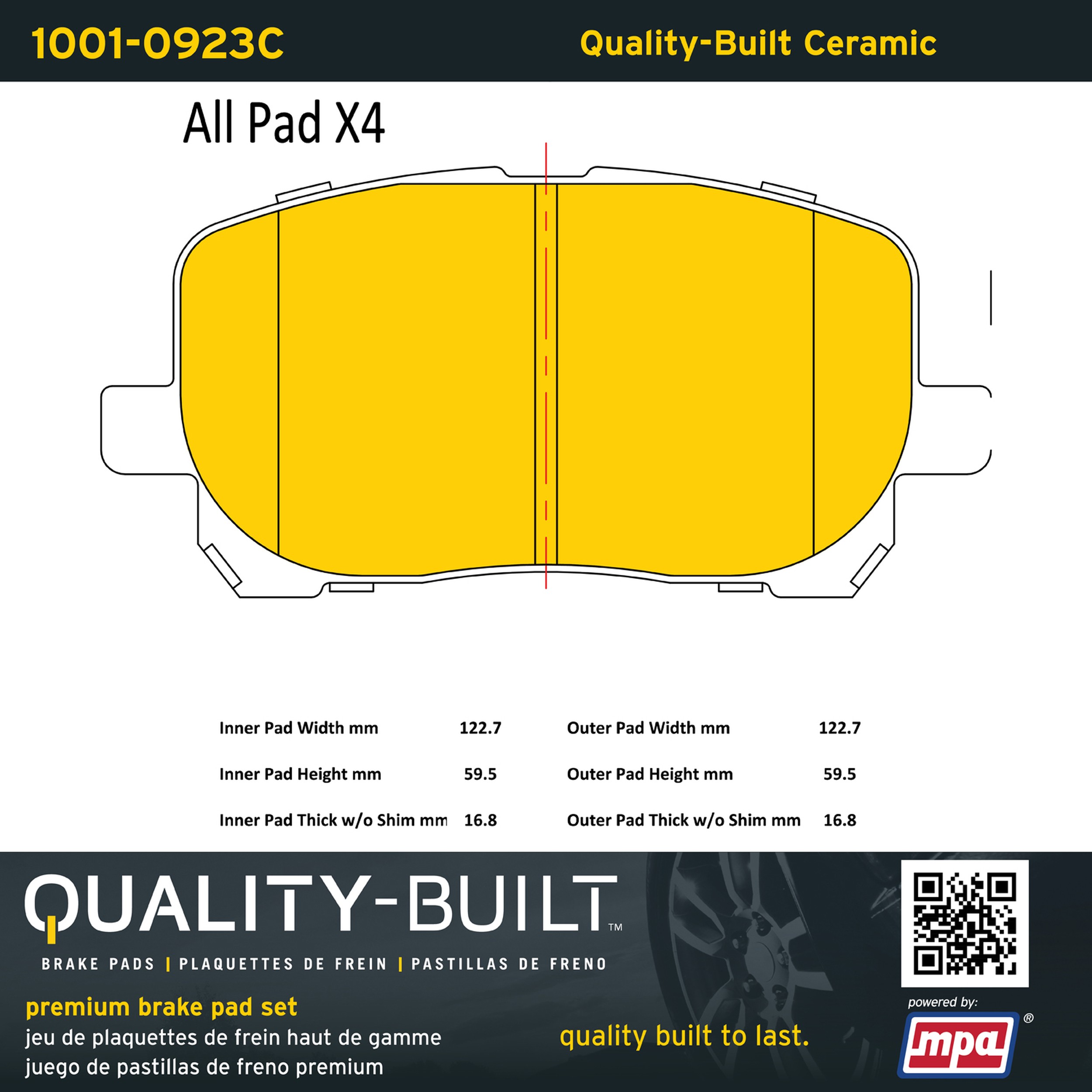 - Quality-Built Premium Brake Pads provide optimized stopping power in all conditions. Application-specific pad formulas remove the guesswork from pad selection by providing friction compounds engineered to restore like-new stopping power for every vehicle. 2025 compliant, copper-free friction formulas deliver dependable performance across a wide thermal range with low brake dust and zero noise.