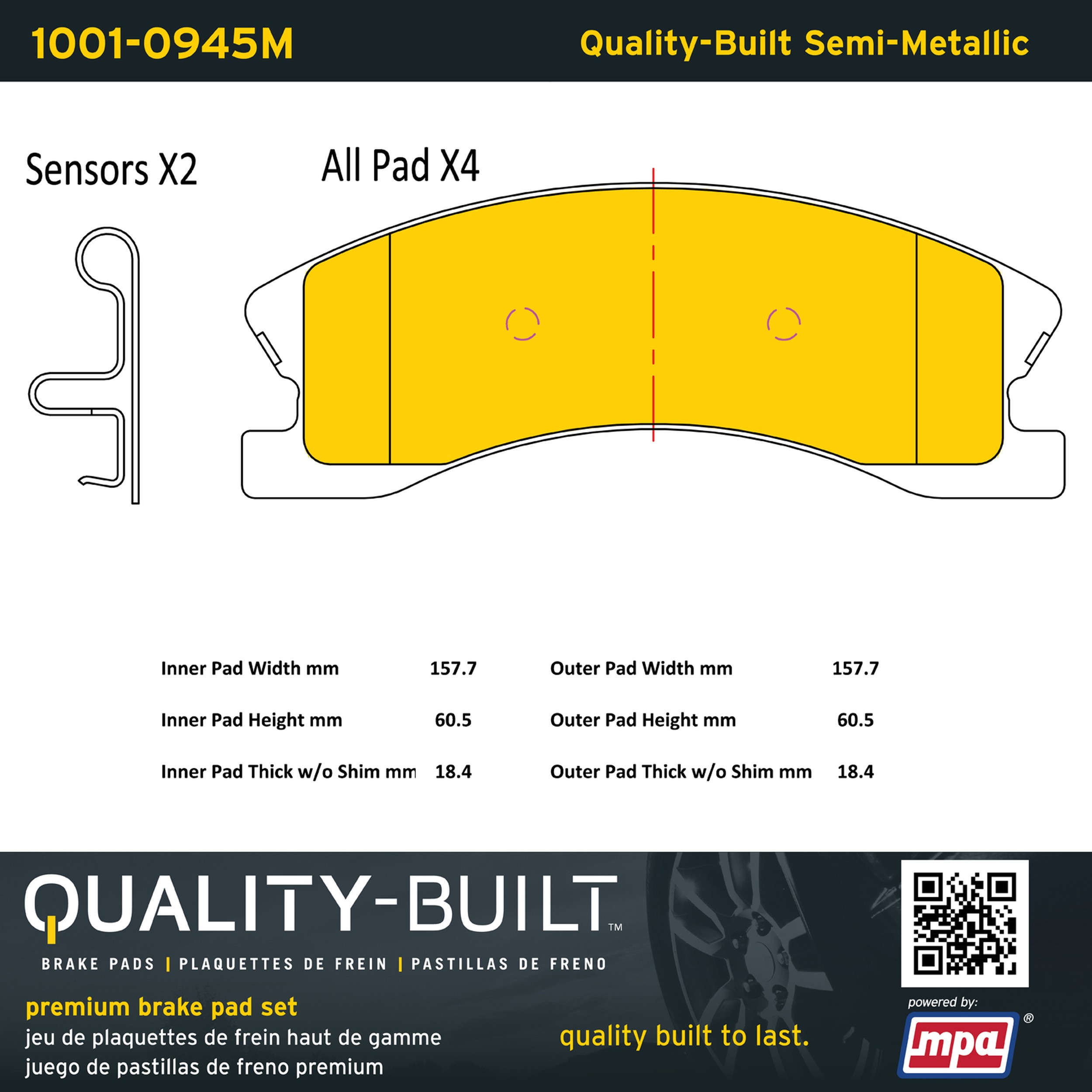 - Quality-Built Premium Semi-Metallic Brake Pads w/ Hardware