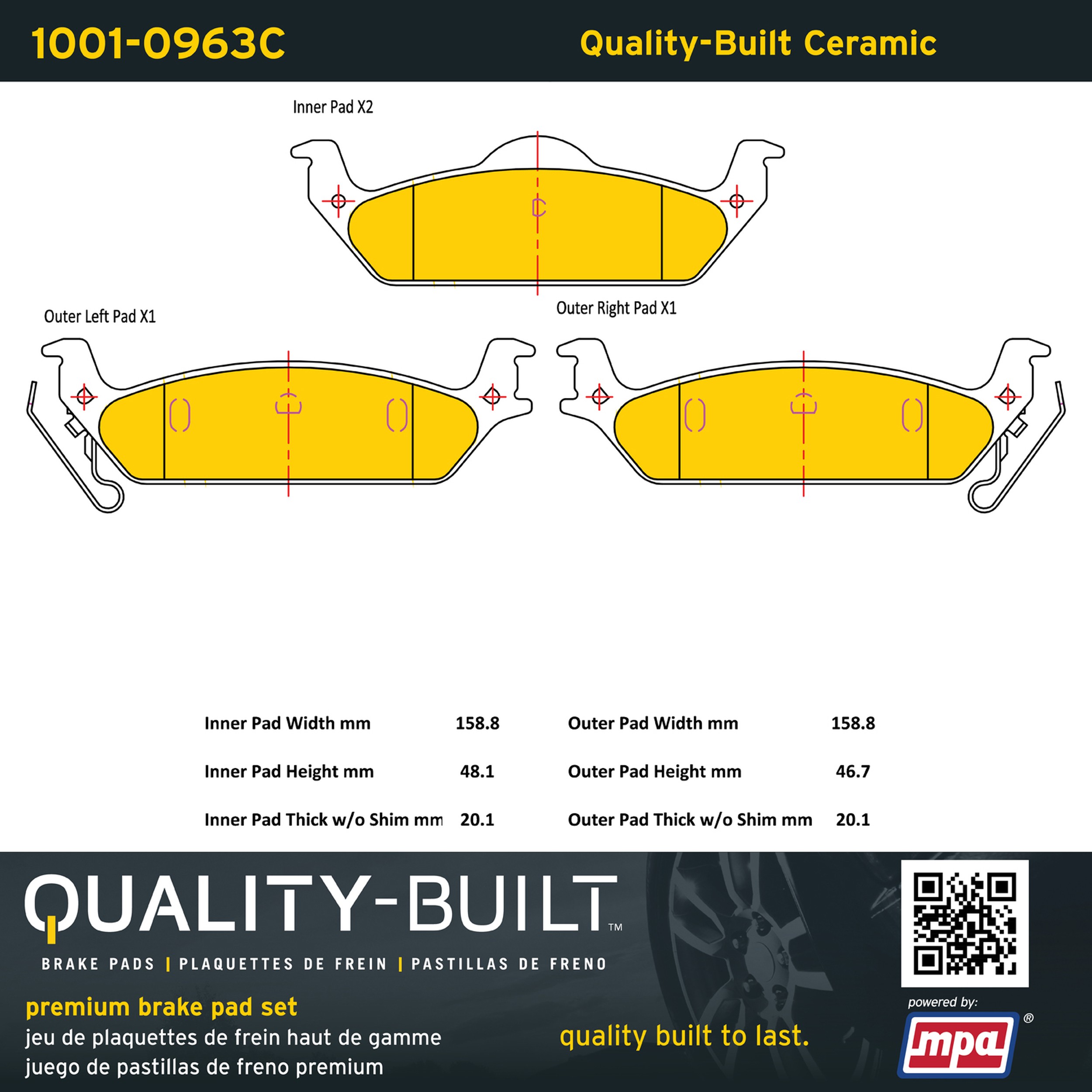 - Quality-Built Premium Brake Pads provide optimized stopping power in all conditions. Application-specific pad formulas remove the guesswork from pad selection by providing friction compounds engineered to restore like-new stopping power for every vehicle. 2025 compliant, copper-free friction formulas deliver dependable performance across a wide thermal range with low brake dust and zero noise.