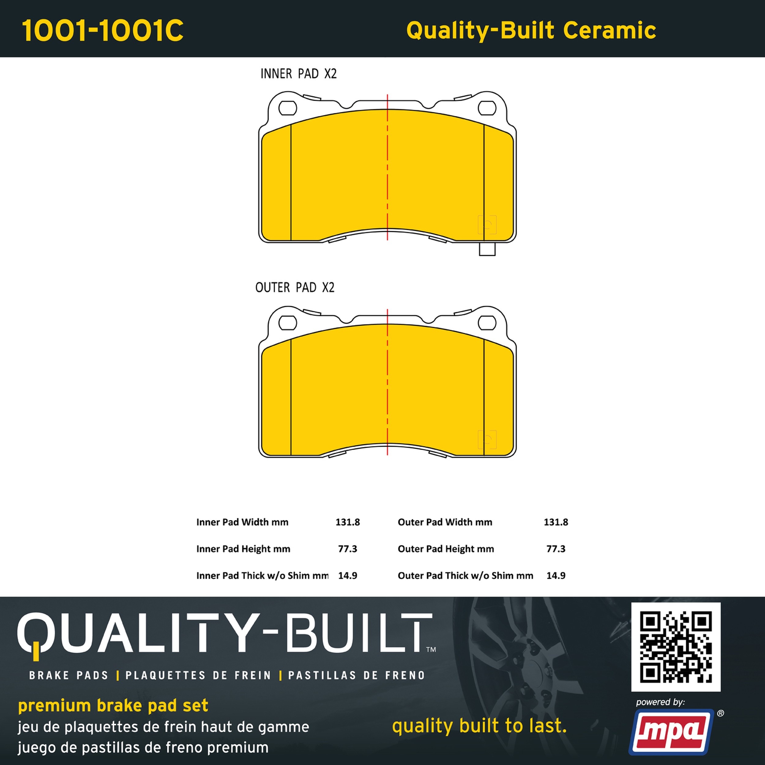 - Quality-Built Premium Ceramic Brake Pads