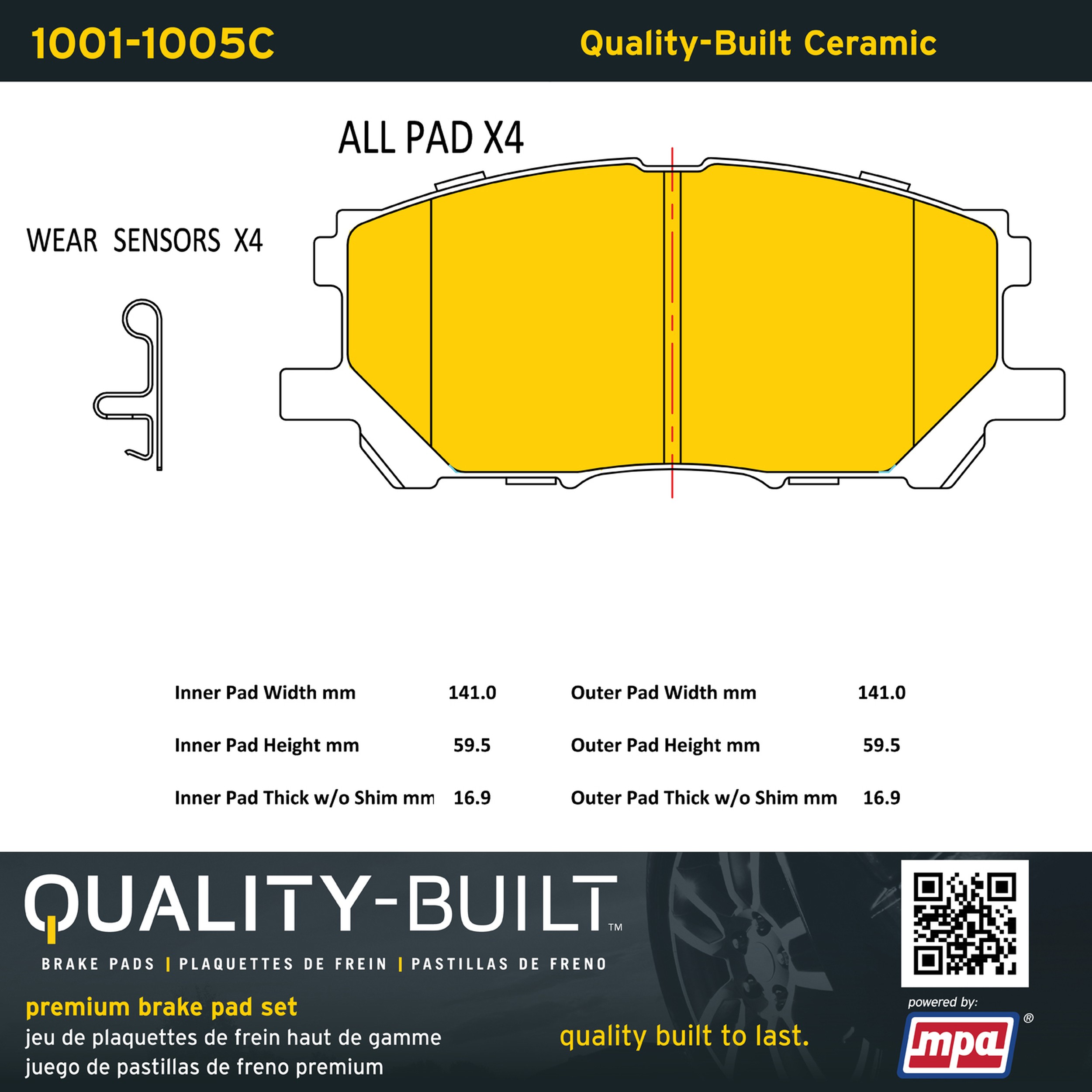 - Quality-Built Premium Brake Pads provide optimized stopping power in all conditions. Application-specific pad formulas remove the guesswork from pad selection by providing friction compounds engineered to restore like-new stopping power for every vehicle. 2025 compliant, copper-free friction formulas deliver dependable performance across a wide thermal range with low brake dust and zero noise.