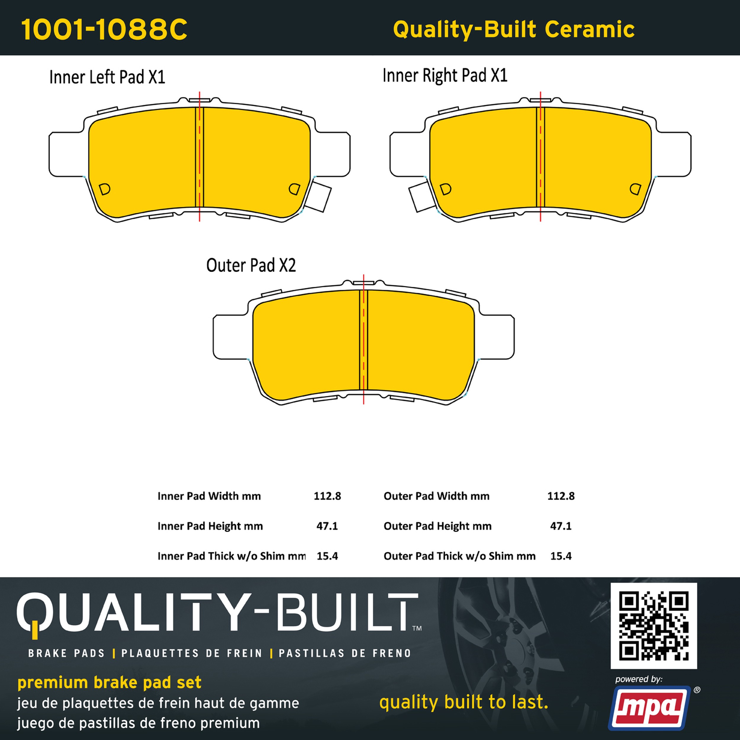- Quality-Built Premium Brake Pads provide optimized stopping power in all conditions. Application-specific pad formulas remove the guesswork from pad selection by providing friction compounds engineered to restore like-new stopping power for every vehicle. 2025 compliant, copper-free friction formulas deliver dependable performance across a wide thermal range with low brake dust and zero noise.