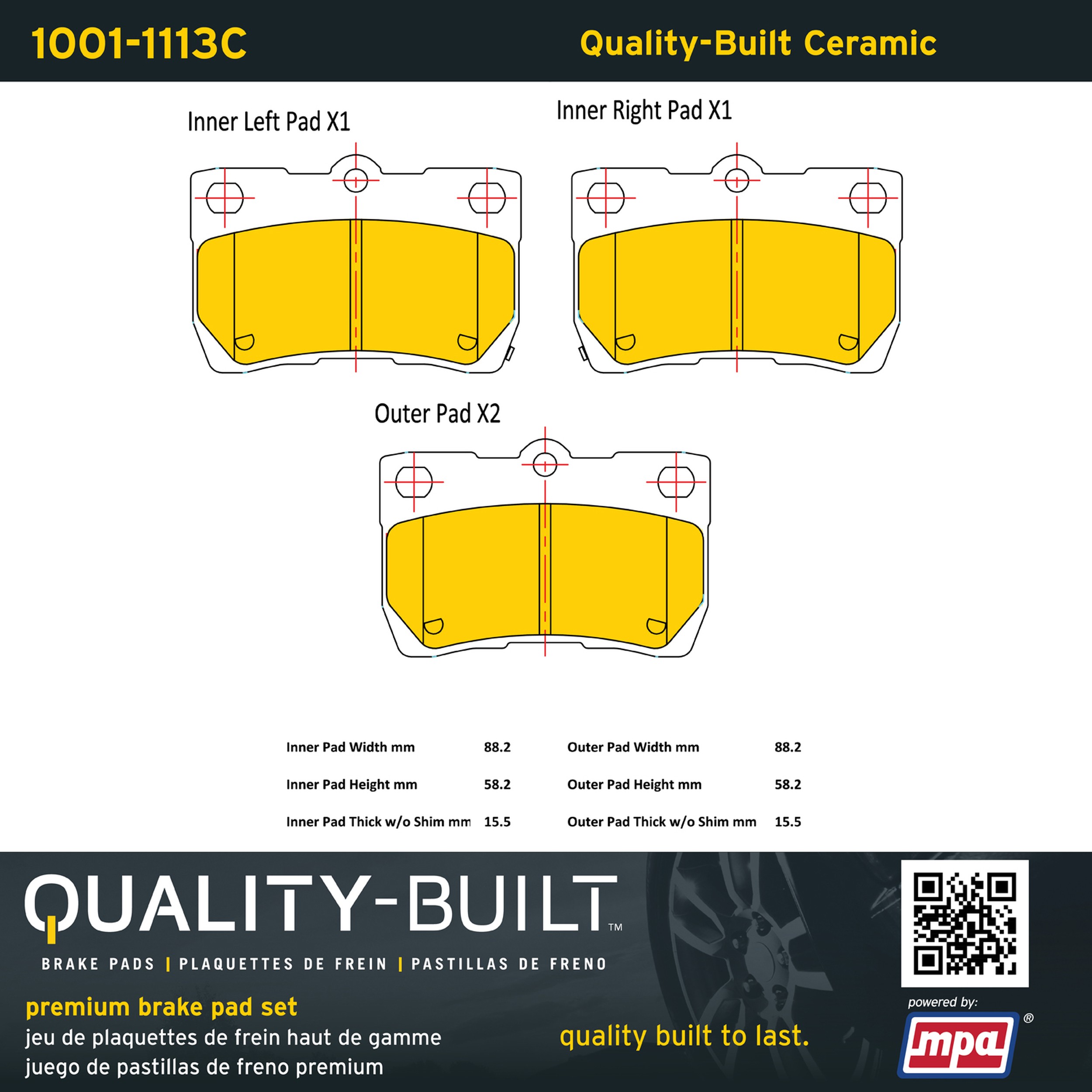 - Quality-Built Premium Brake Pads provide optimized stopping power in all conditions. Application-specific pad formulas remove the guesswork from pad selection by providing friction compounds engineered to restore like-new stopping power for every vehicle. 2025 compliant, copper-free friction formulas deliver dependable performance across a wide thermal range with low brake dust and zero noise.
