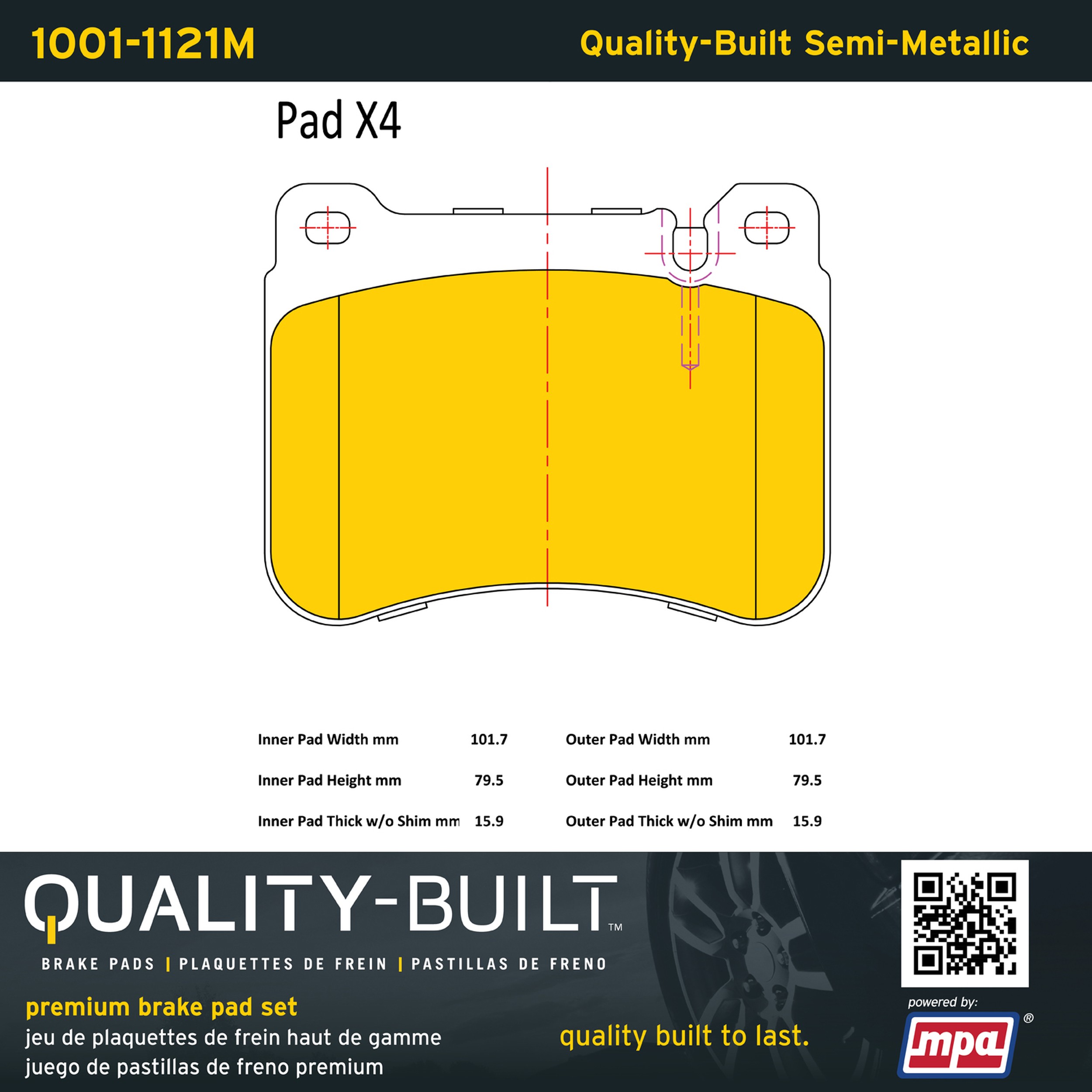 - Quality-Built Premium Brake Pads provide optimized stopping power in all conditions. Application-specific pad formulas remove the guesswork from pad selection by providing friction compounds engineered to restore like-new stopping power for every vehicle. 2025 compliant, copper-free friction formulas deliver dependable performance across a wide thermal range with low brake dust and zero noise.