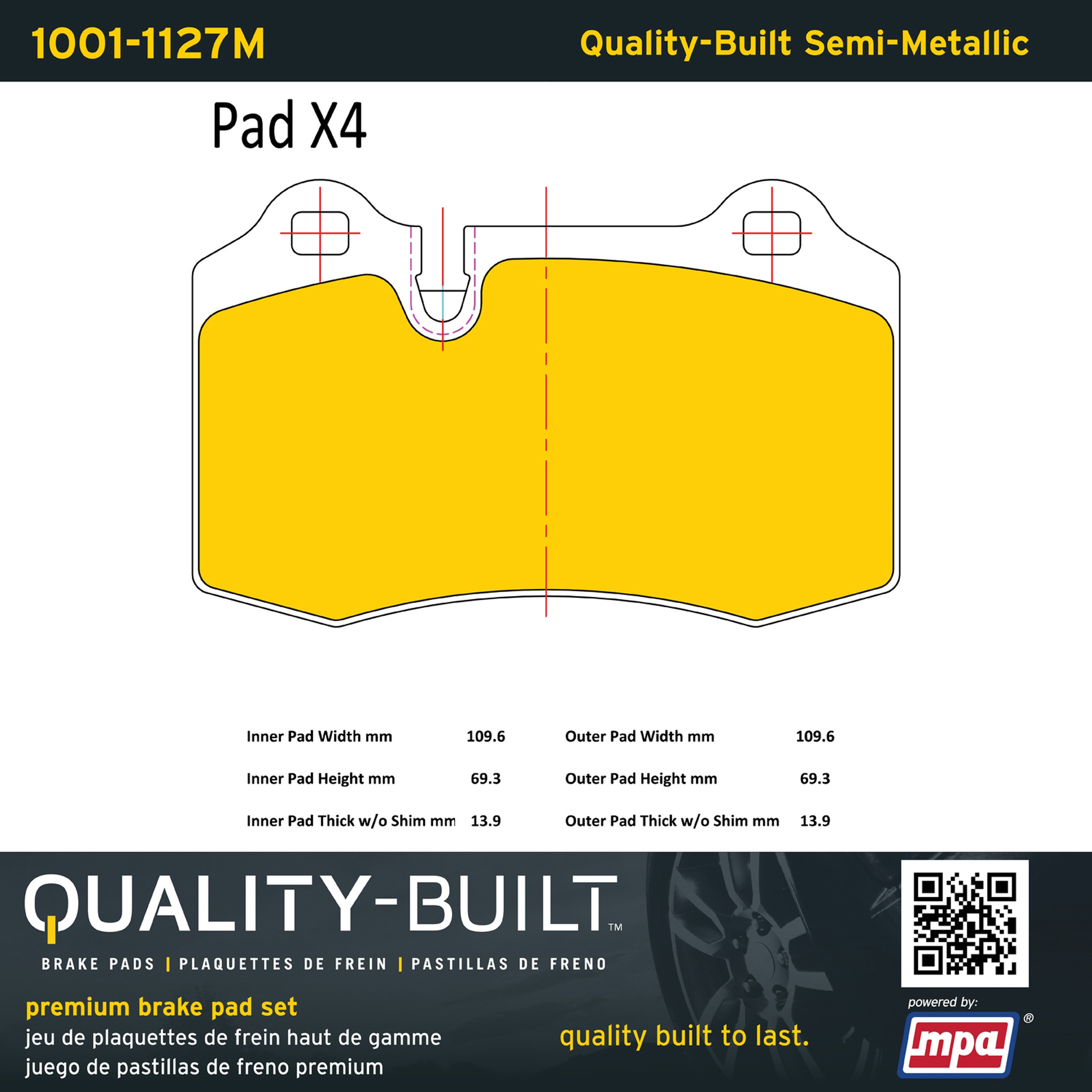 - Quality-Built Premium Brake Pads provide optimized stopping power in all conditions. Application-specific pad formulas remove the guesswork from pad selection by providing friction compounds engineered to restore like-new stopping power for every vehicle. 2025 compliant, copper-free friction formulas deliver dependable performance across a wide thermal range with low brake dust and zero noise.