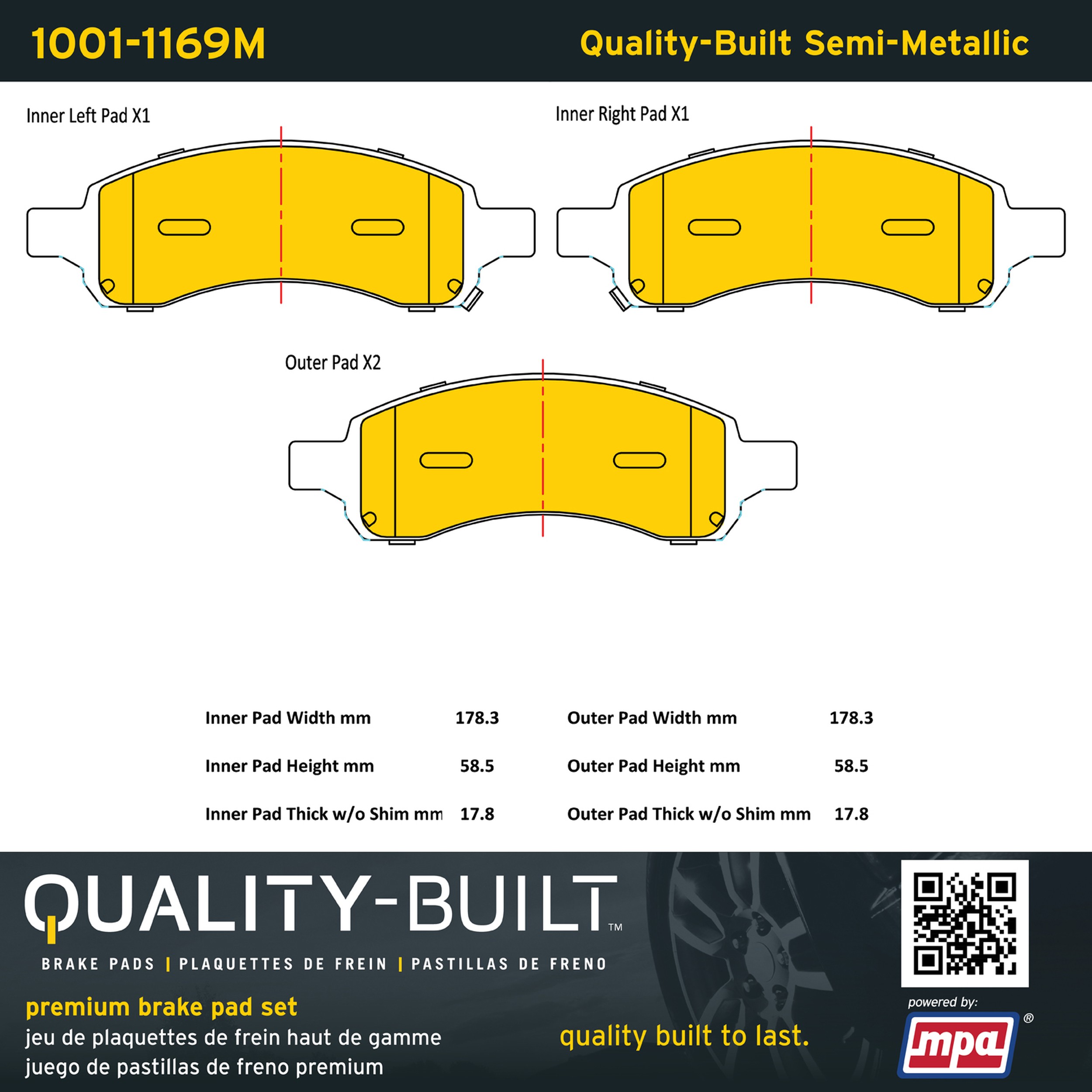 - Quality-Built Premium Brake Pads provide optimized stopping power in all conditions. Application-specific pad formulas remove the guesswork from pad selection by providing friction compounds engineered to restore like-new stopping power for every vehicle. 2025 compliant, copper-free friction formulas deliver dependable performance across a wide thermal range with low brake dust and zero noise.