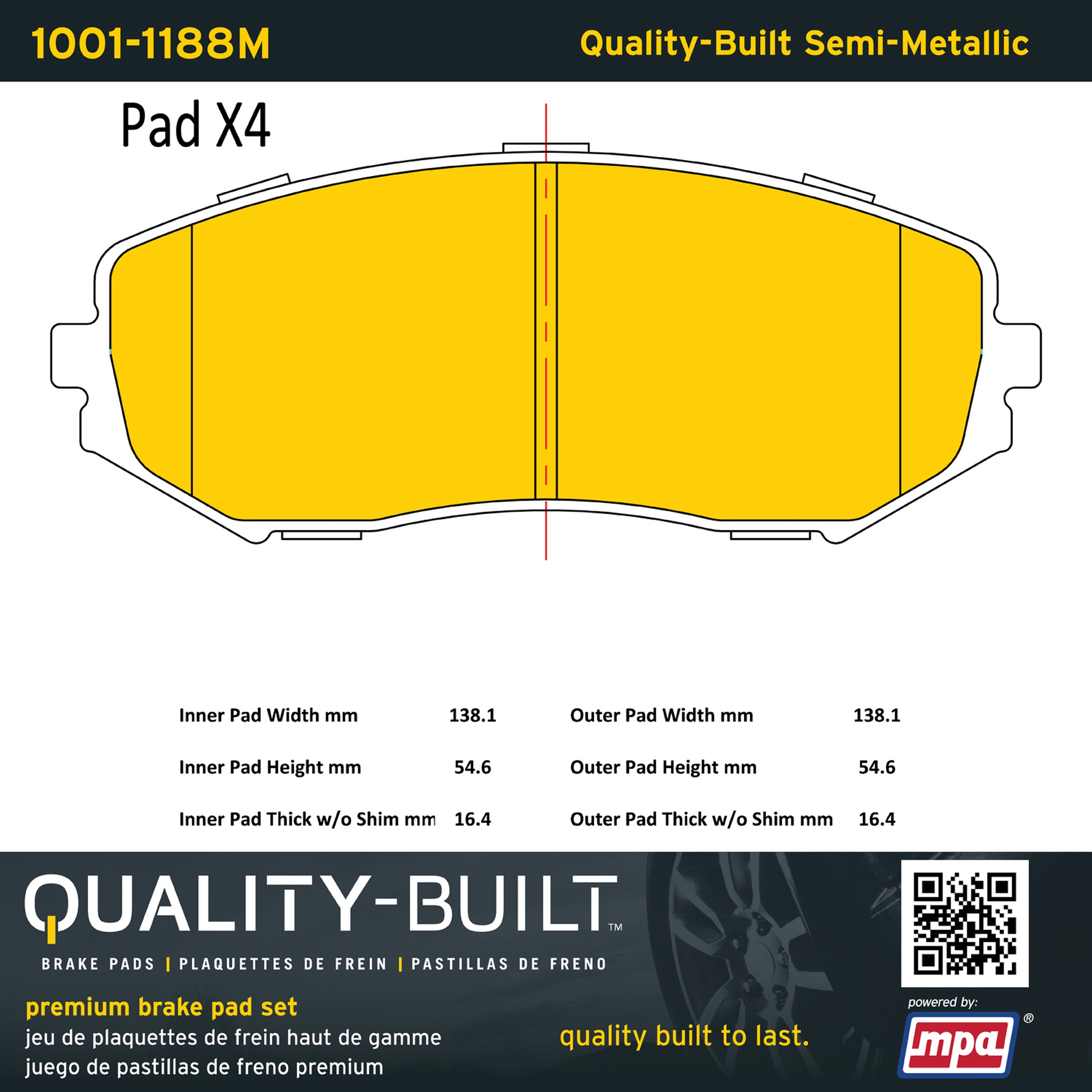 - Quality-Built Premium Brake Pads provide optimized stopping power in all conditions. Application-specific pad formulas remove the guesswork from pad selection by providing friction compounds engineered to restore like-new stopping power for every vehicle. 2025 compliant, copper-free friction formulas deliver dependable performance across a wide thermal range with low brake dust and zero noise.