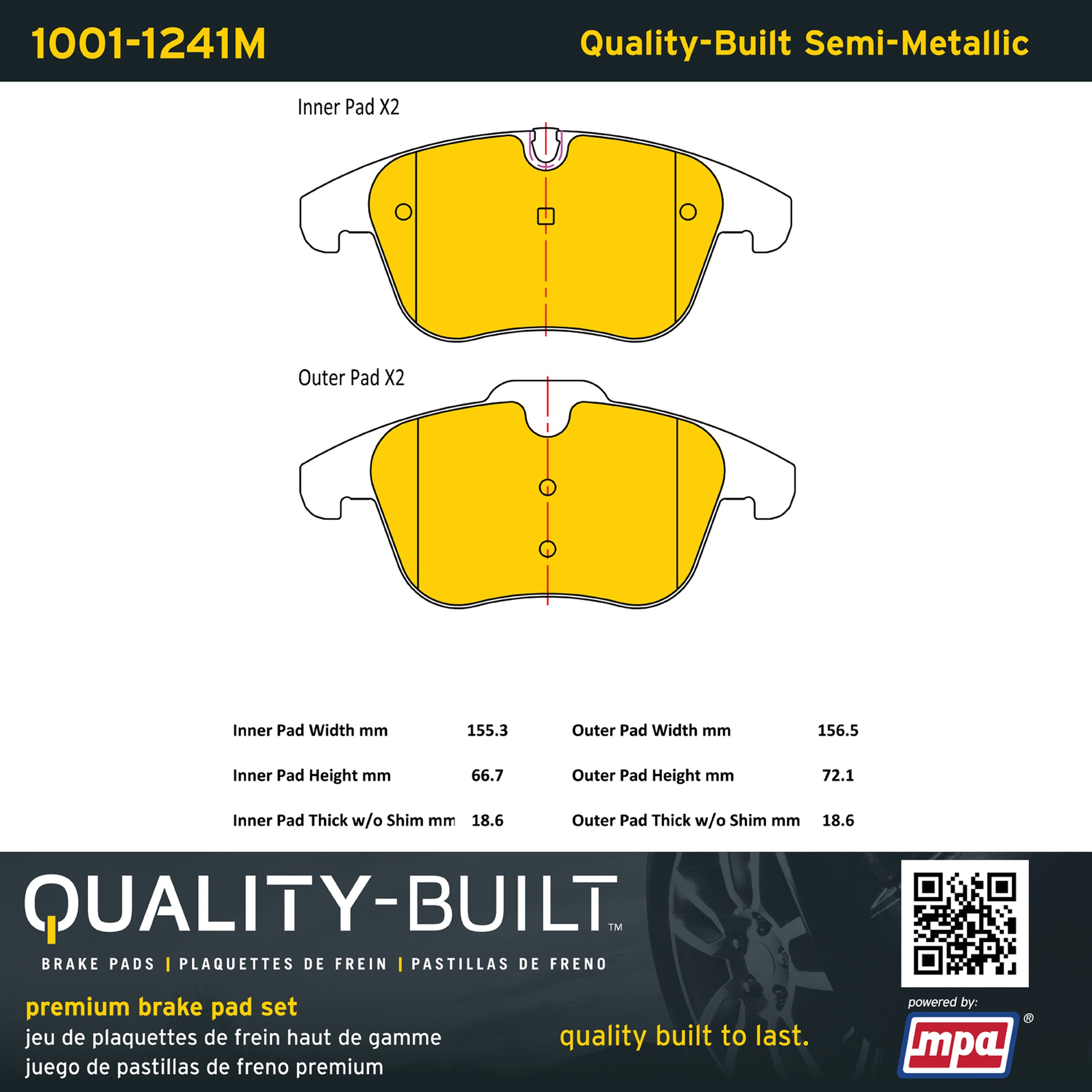- Quality-Built Premium Brake Pads provide optimized stopping power in all conditions. Application-specific pad formulas remove the guesswork from pad selection by providing friction compounds engineered to restore like-new stopping power for every vehicle. 2025 compliant, copper-free friction formulas deliver dependable performance across a wide thermal range with low brake dust and zero noise.