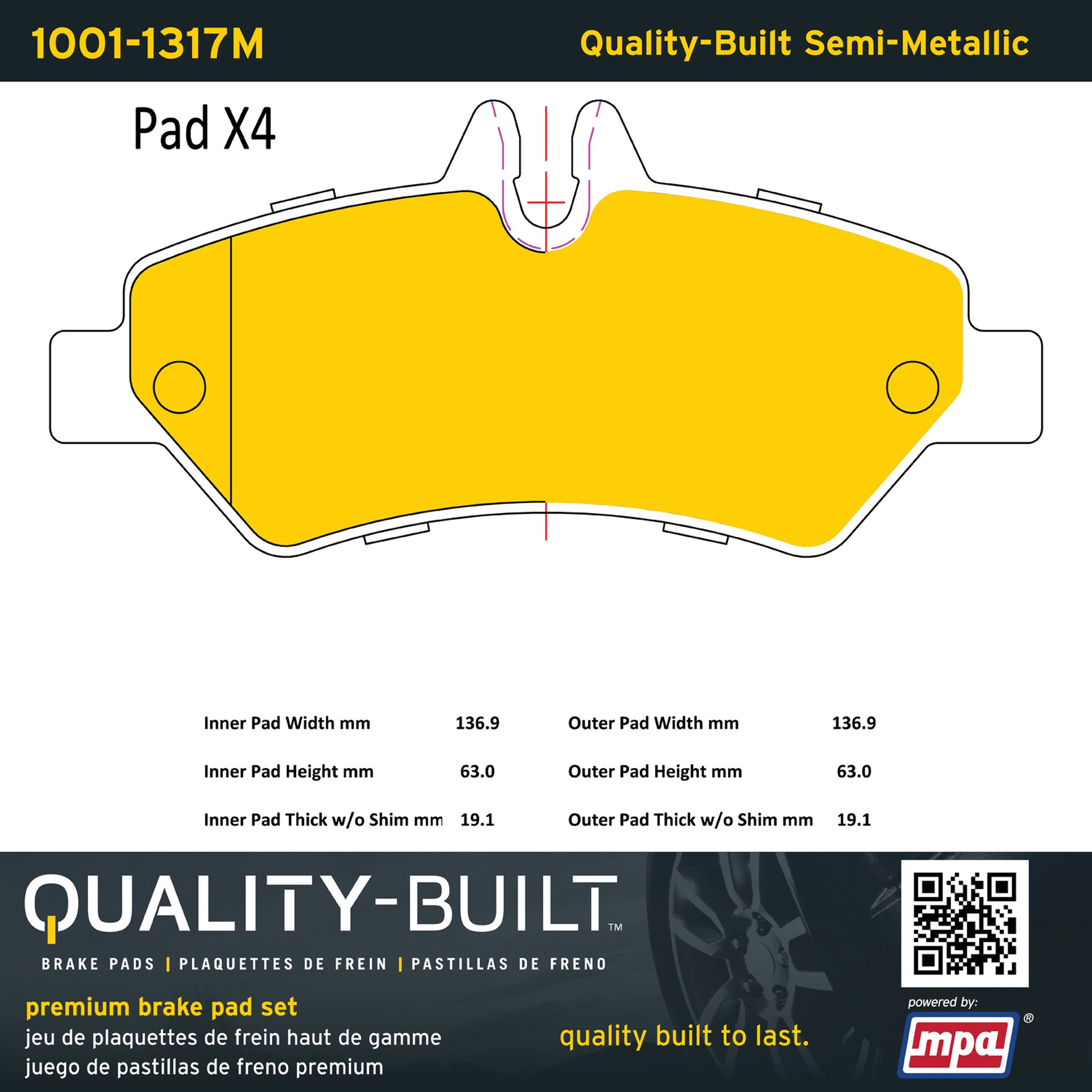 - Quality-Built Premium Brake Pads provide optimized stopping power in all conditions. Application-specific pad formulas remove the guesswork from pad selection by providing friction compounds engineered to restore like-new stopping power for every vehicle. 2025 compliant, copper-free friction formulas deliver dependable performance across a wide thermal range with low brake dust and zero noise.