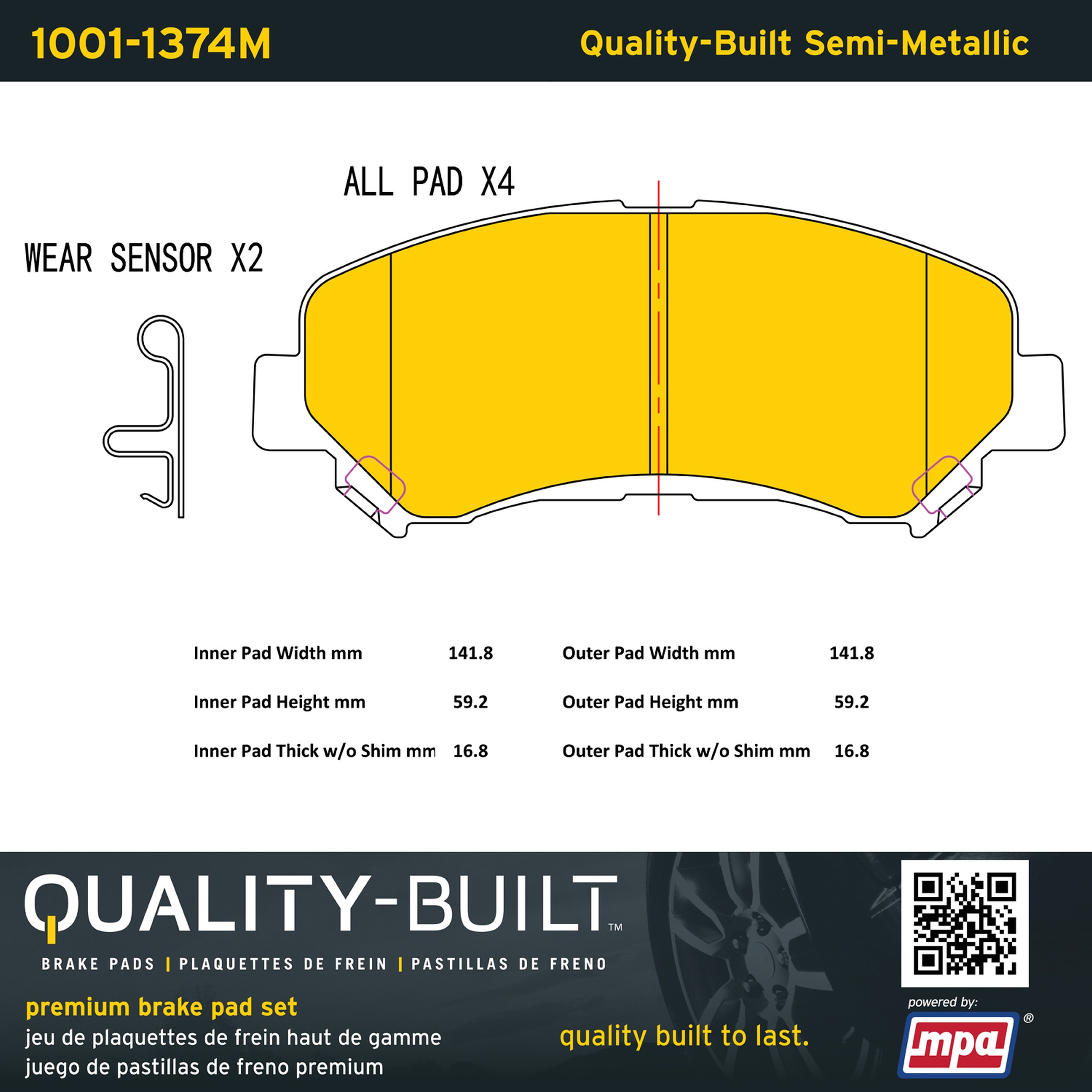 - Quality-Built Premium Semi-Metallic Brake Pads w/ Hardware
