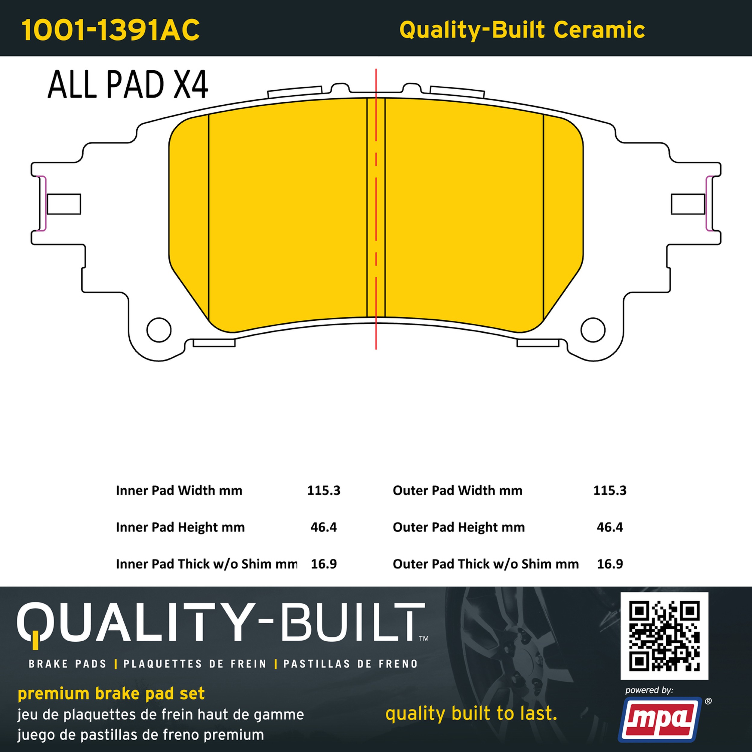 - Quality-Built Premium Brake Pads provide optimized stopping power in all conditions. Application-specific pad formulas remove the guesswork from pad selection by providing friction compounds engineered to restore like-new stopping power for every vehicle. 2025 compliant, copper-free friction formulas deliver dependable performance across a wide thermal range with low brake dust and zero noise.
