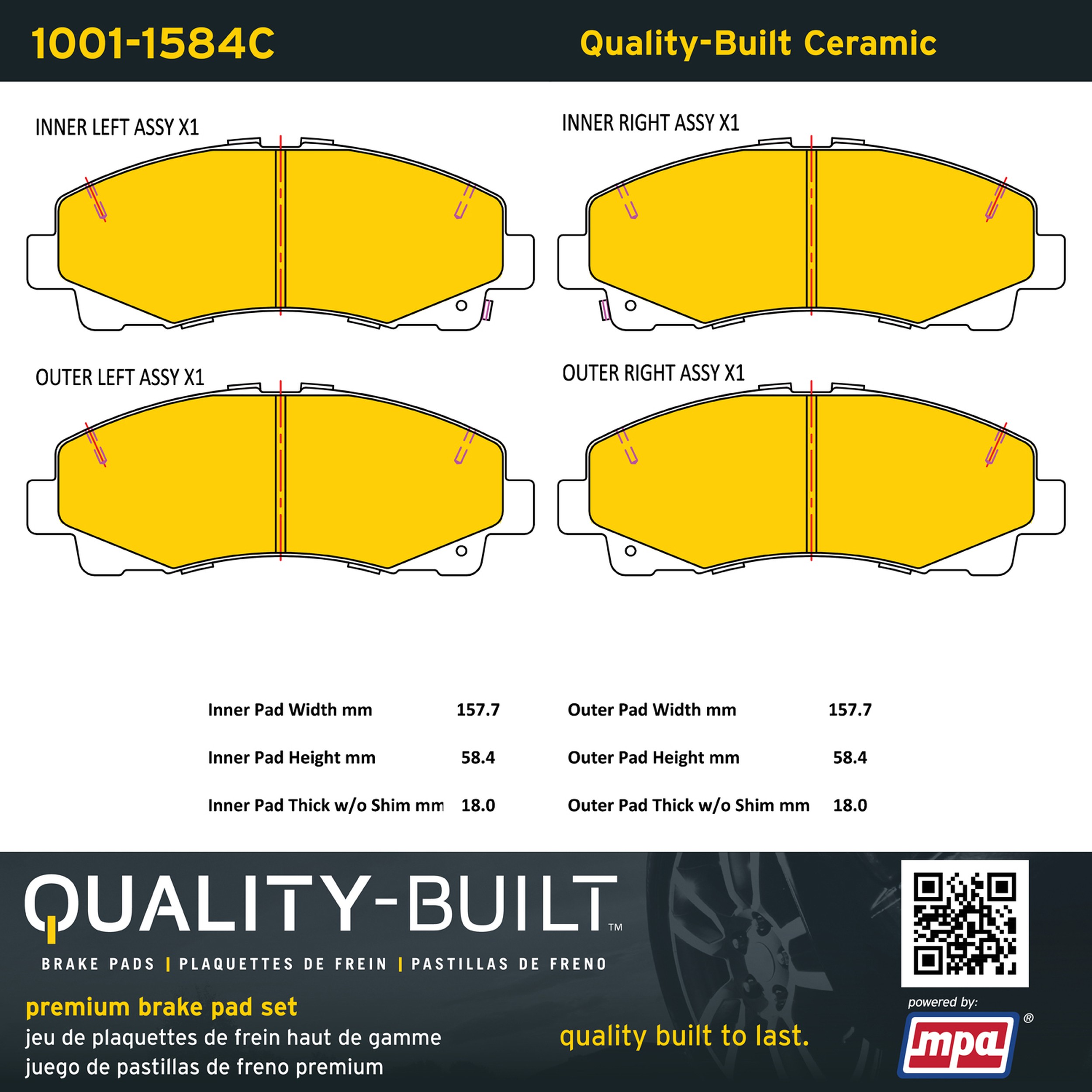 - Quality-Built Premium Ceramic Brake Pads w/ Hardware
