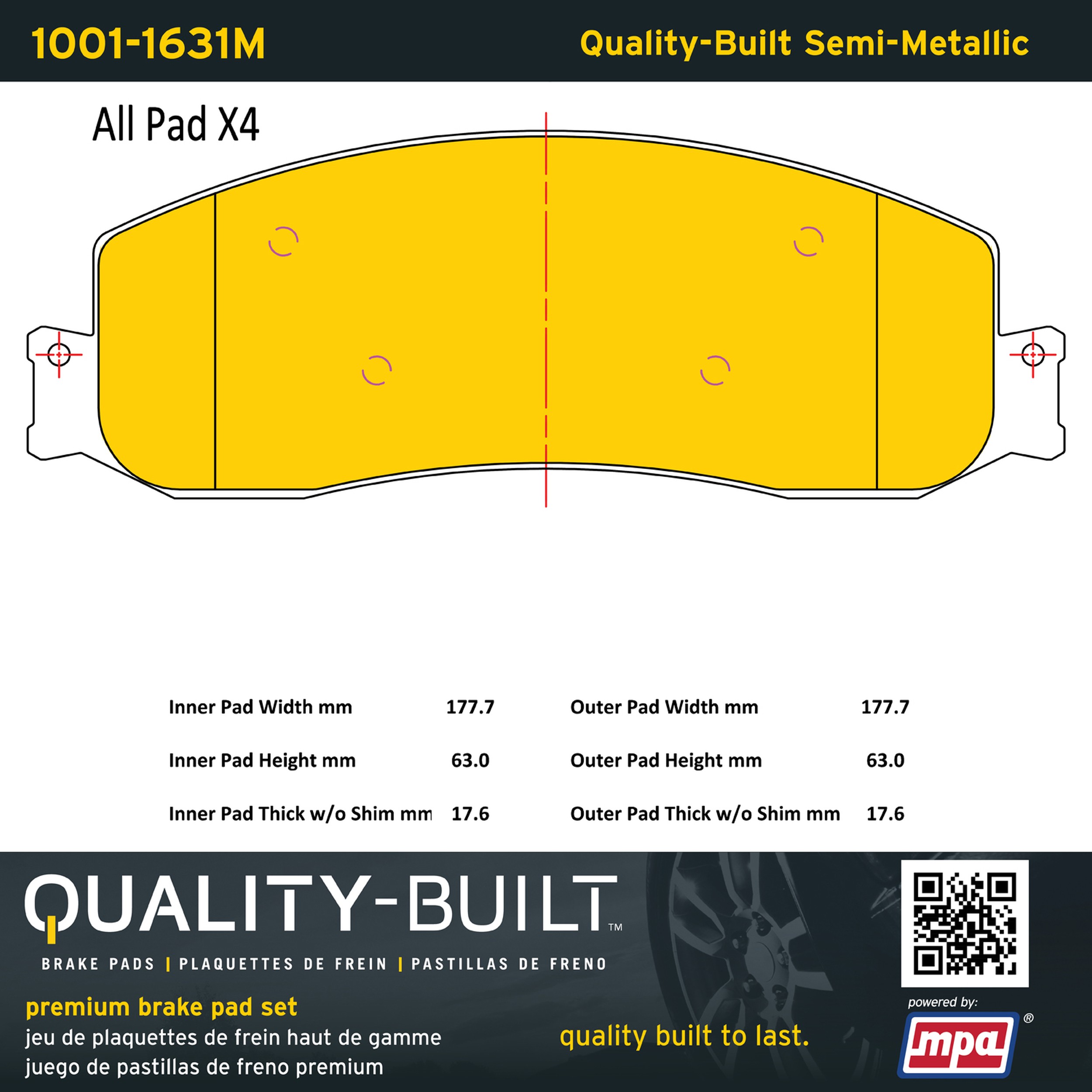 - Quality-Built Premium Brake Pads provide optimized stopping power in all conditions. Application-specific pad formulas remove the guesswork from pad selection by providing friction compounds engineered to restore like-new stopping power for every vehicle. 2025 compliant, copper-free friction formulas deliver dependable performance across a wide thermal range with low brake dust and zero noise.