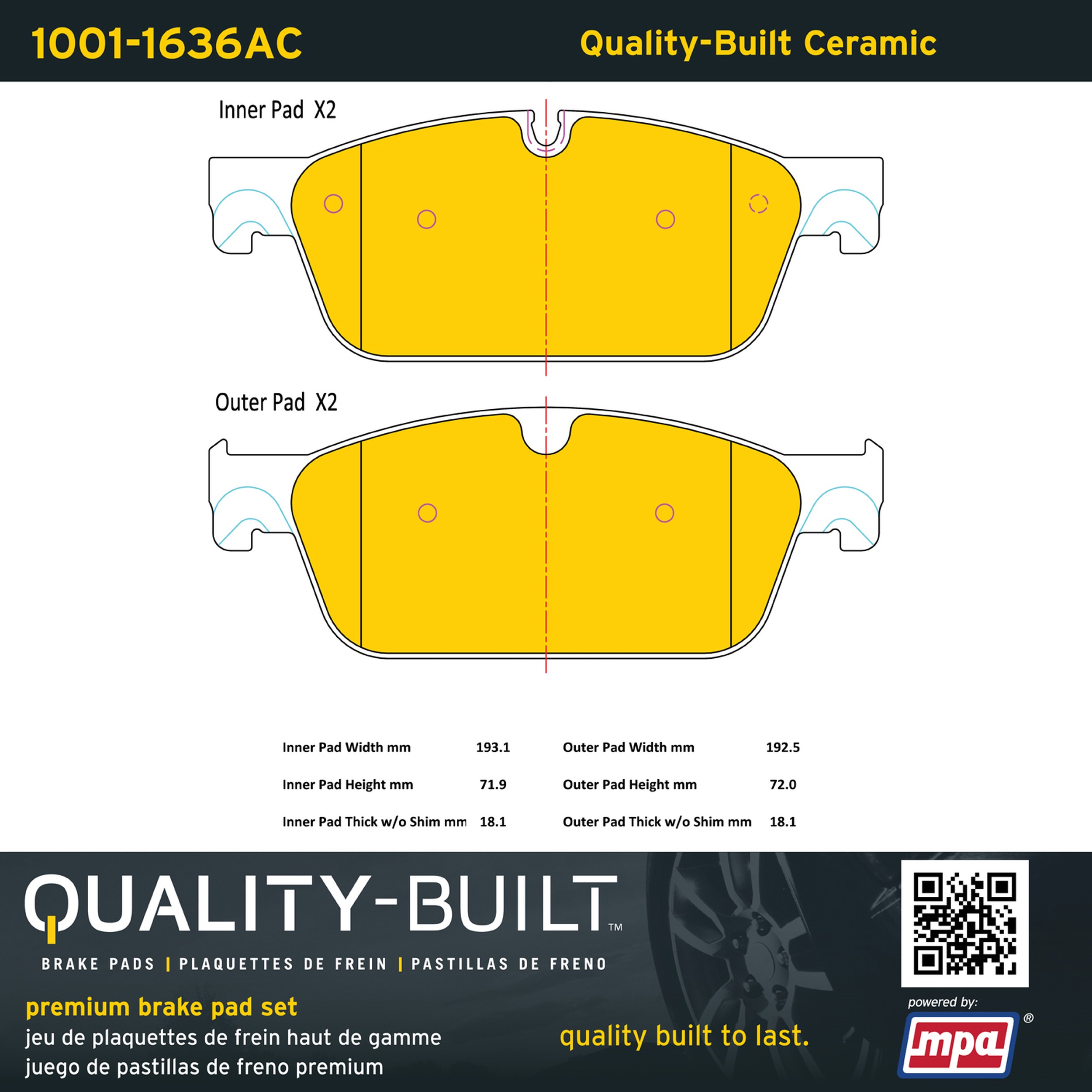 - Quality-Built Premium Brake Pads provide optimized stopping power in all conditions. Application-specific pad formulas remove the guesswork from pad selection by providing friction compounds engineered to restore like-new stopping power for every vehicle. 2025 compliant, copper-free friction formulas deliver dependable performance across a wide thermal range with low brake dust and zero noise.