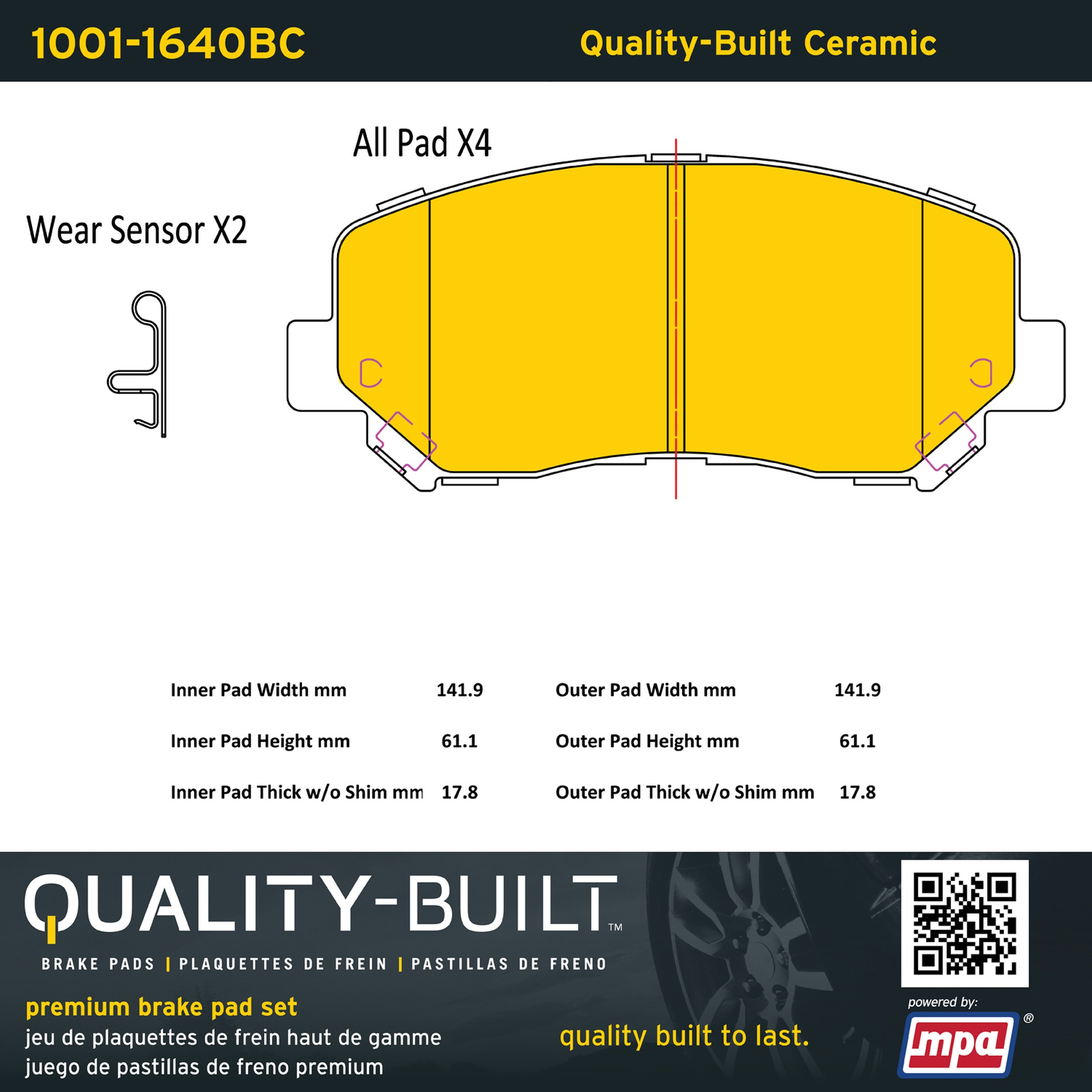 - Quality-Built Premium Ceramic Brake Pads w/ Hardware