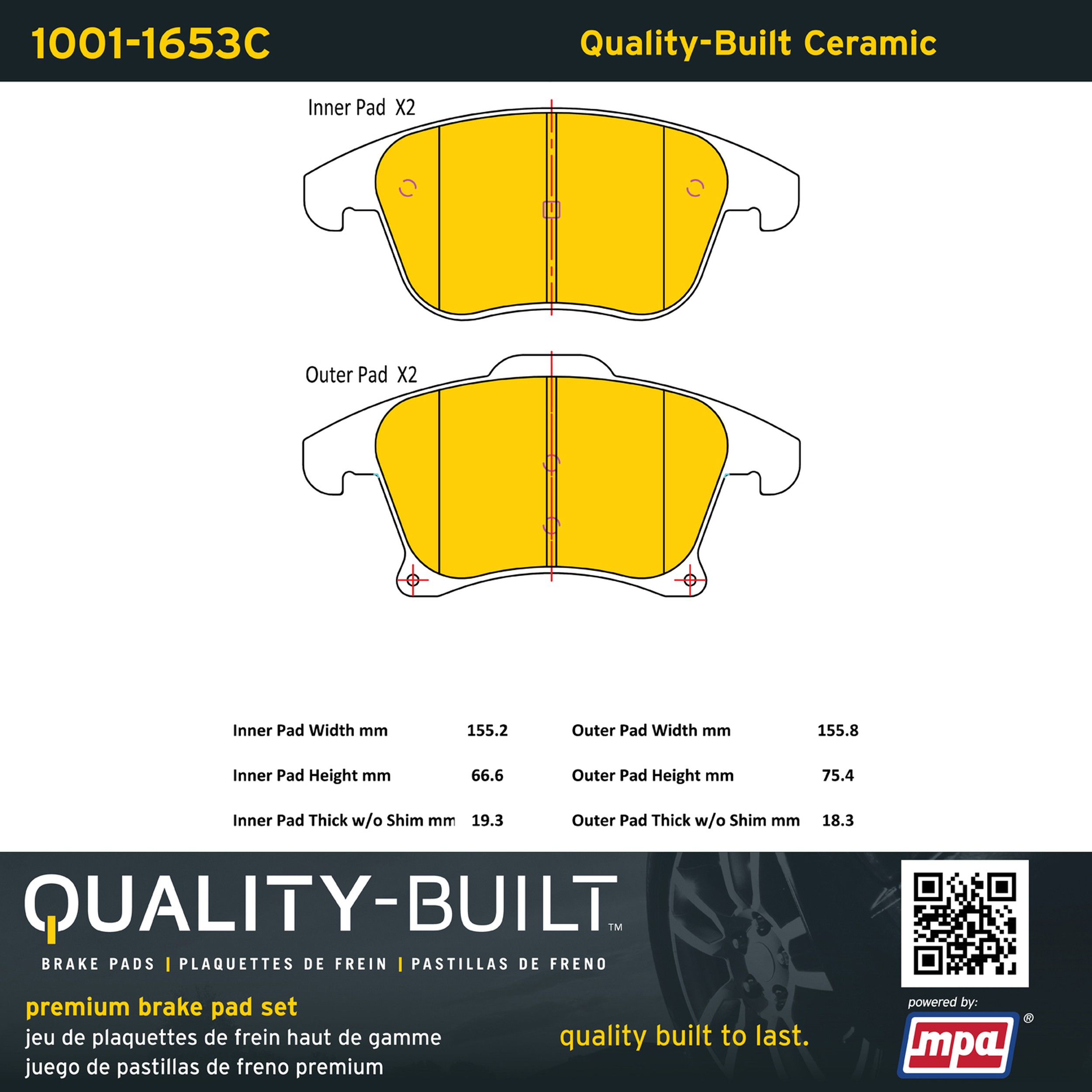 - Quality-Built Premium Brake Pads provide optimized stopping power in all conditions. Application-specific pad formulas remove the guesswork from pad selection by providing friction compounds engineered to restore like-new stopping power for every vehicle. 2025 compliant, copper-free friction formulas deliver dependable performance across a wide thermal range with low brake dust and zero noise.